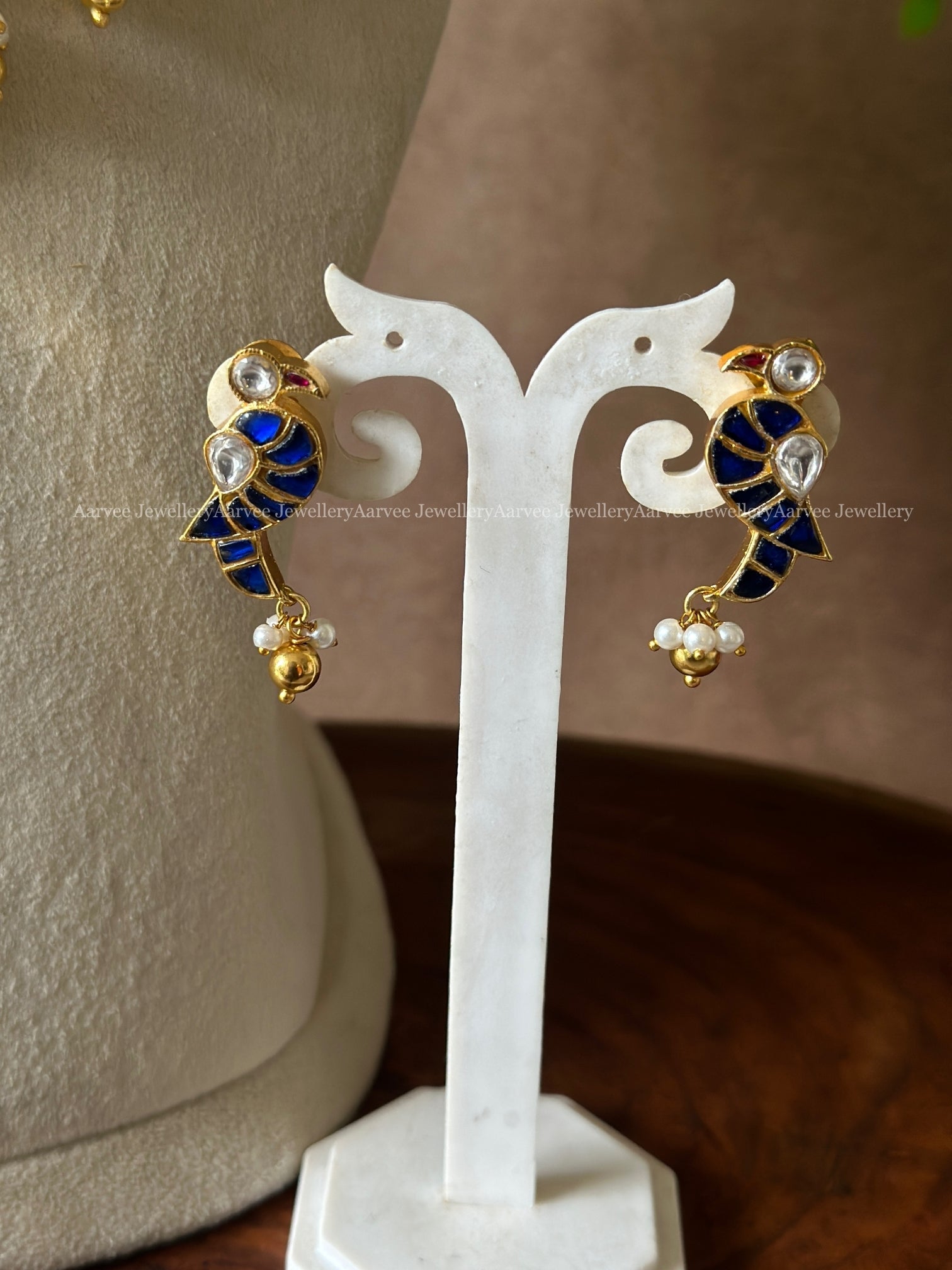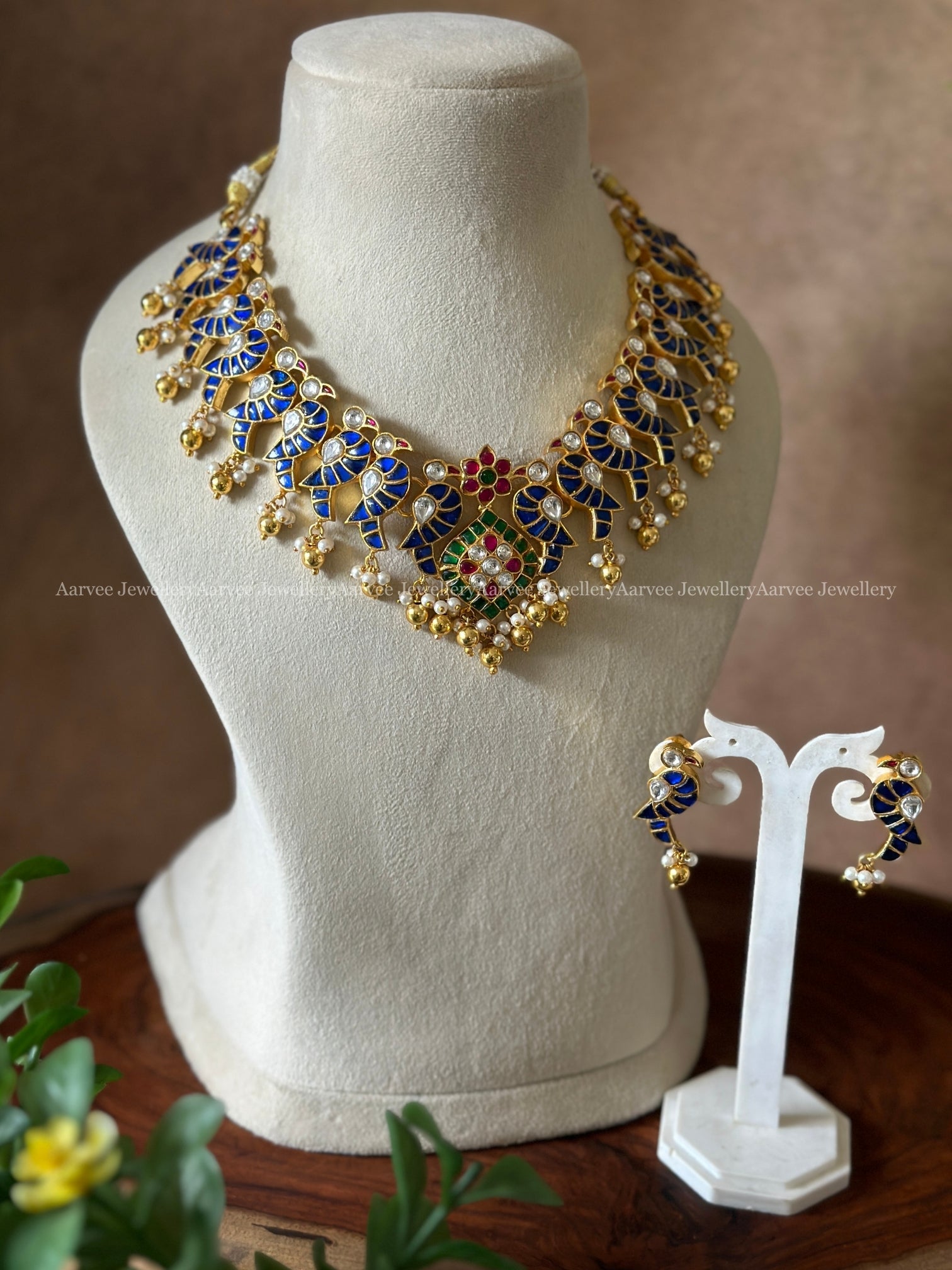 JADAU KUNDAN PARROT MOTIF NECKLACE SET WITH BLUE STONES