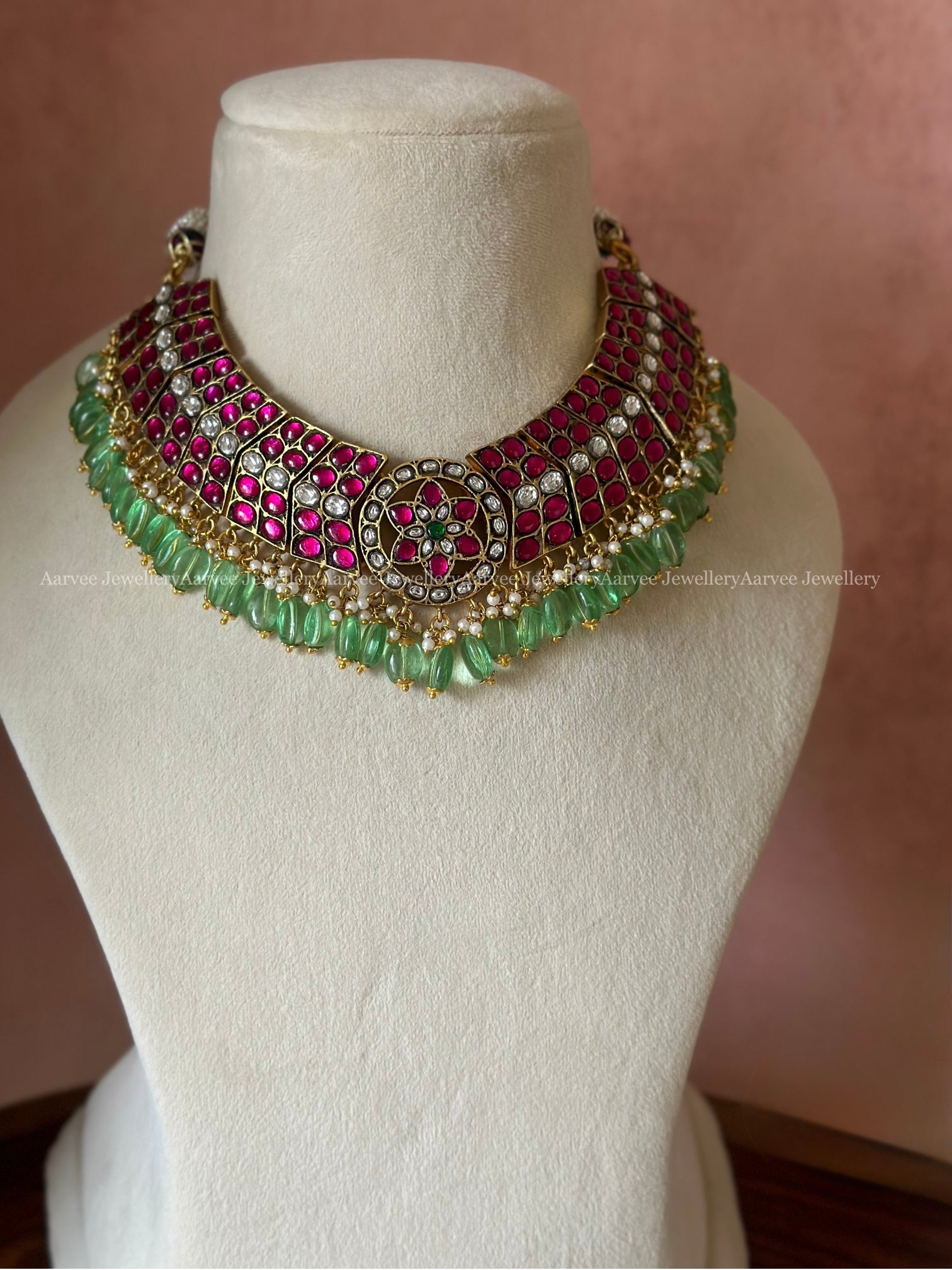 JADAU KUNDAN PINK STONE BUTTA CHOKER WITH PASTEL BEADS