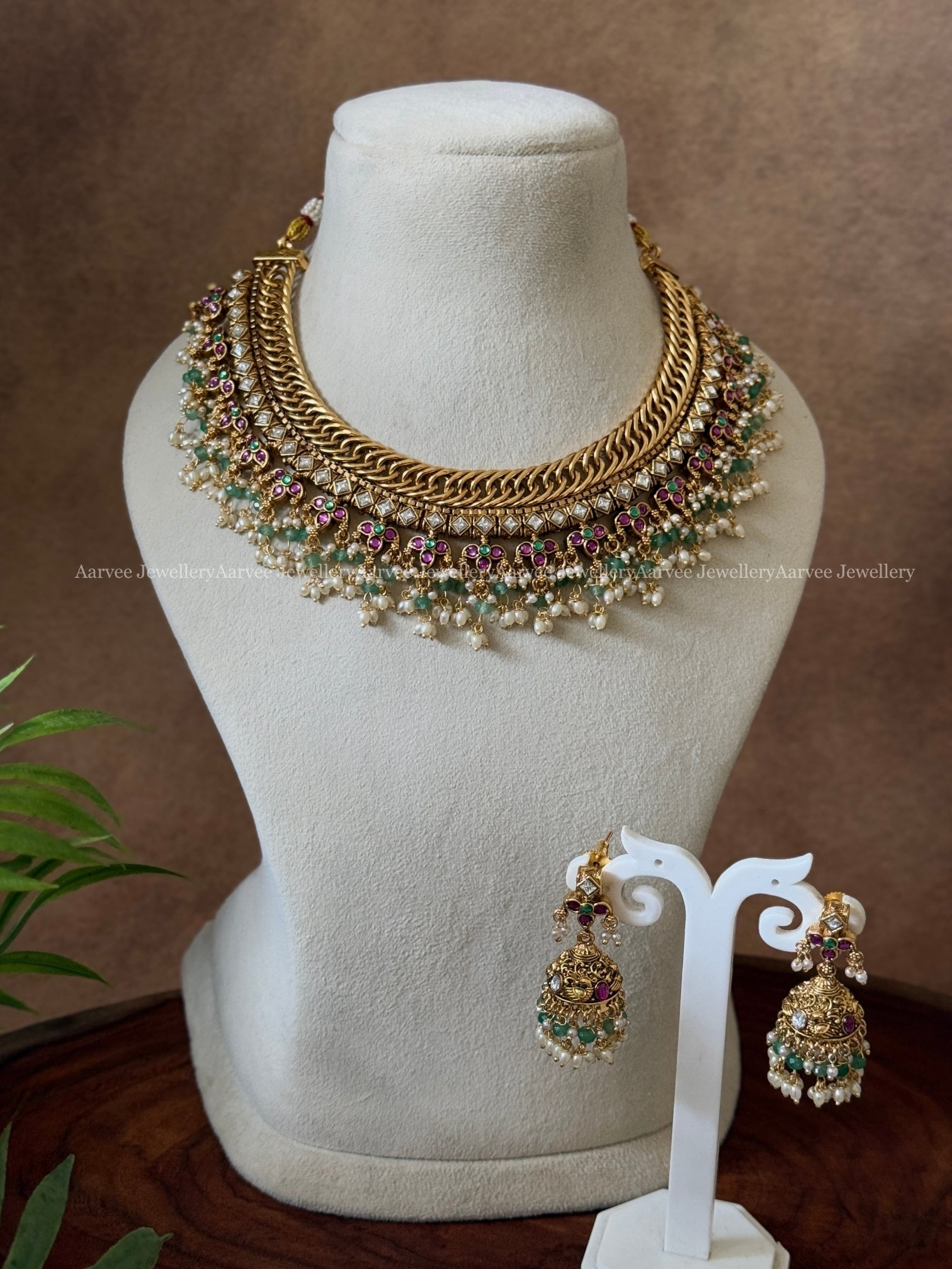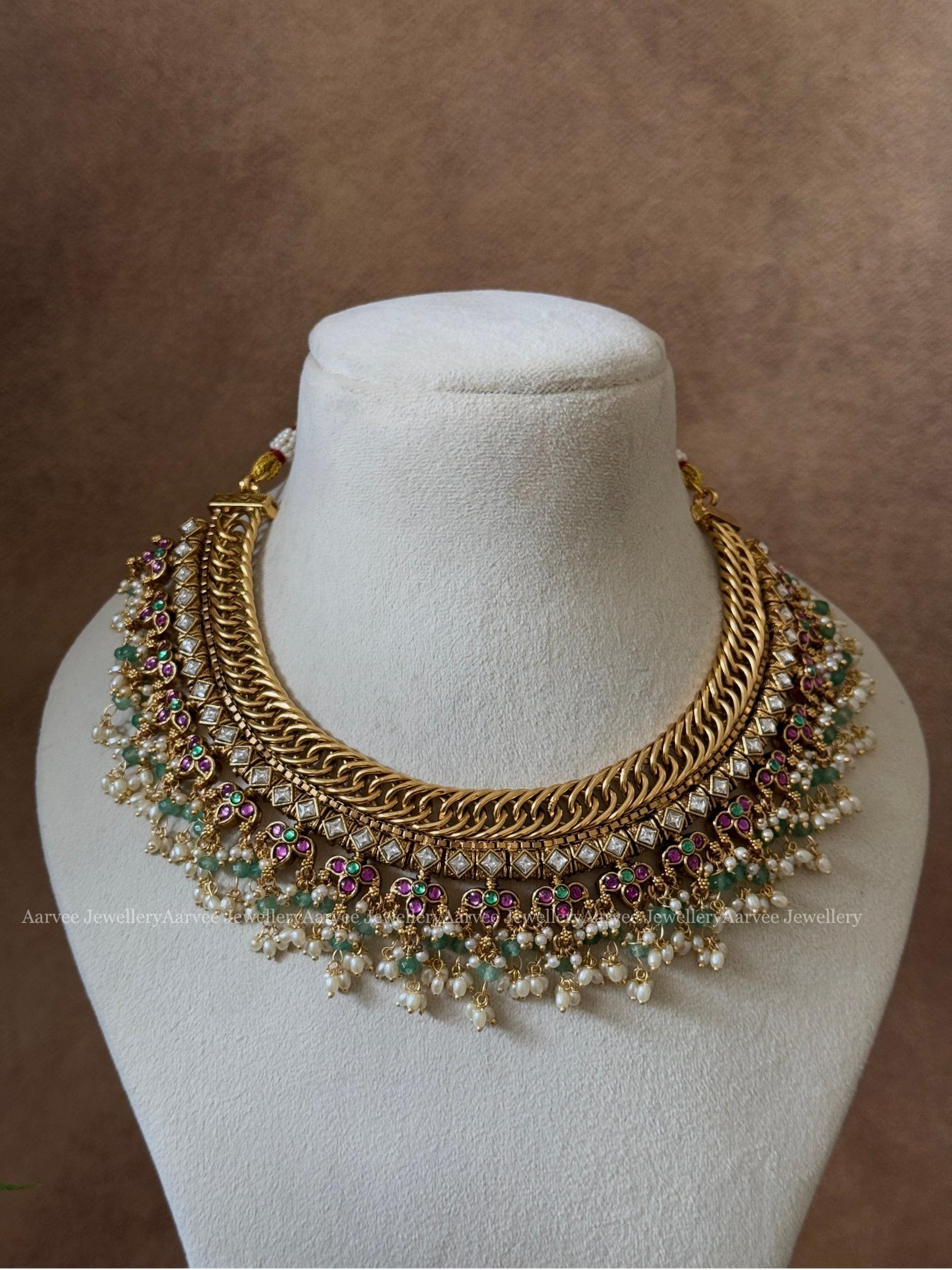 JALEBI NECKLACE SET WITH PASTEL BEADS & PEARLS