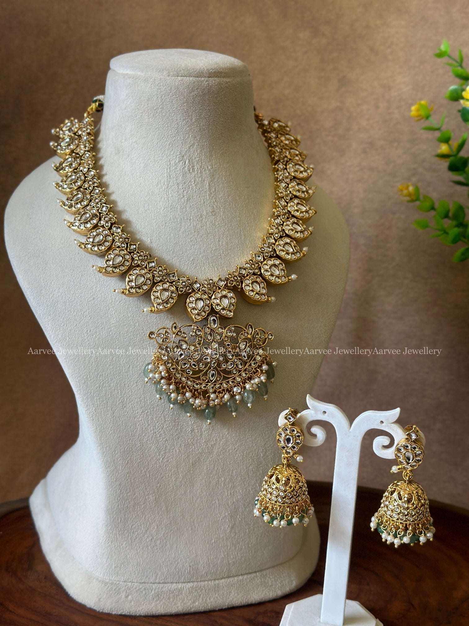 KEMP MANGO MOTIF NECKLACE SET WITH WHITE STONES & PASTEL BEADS