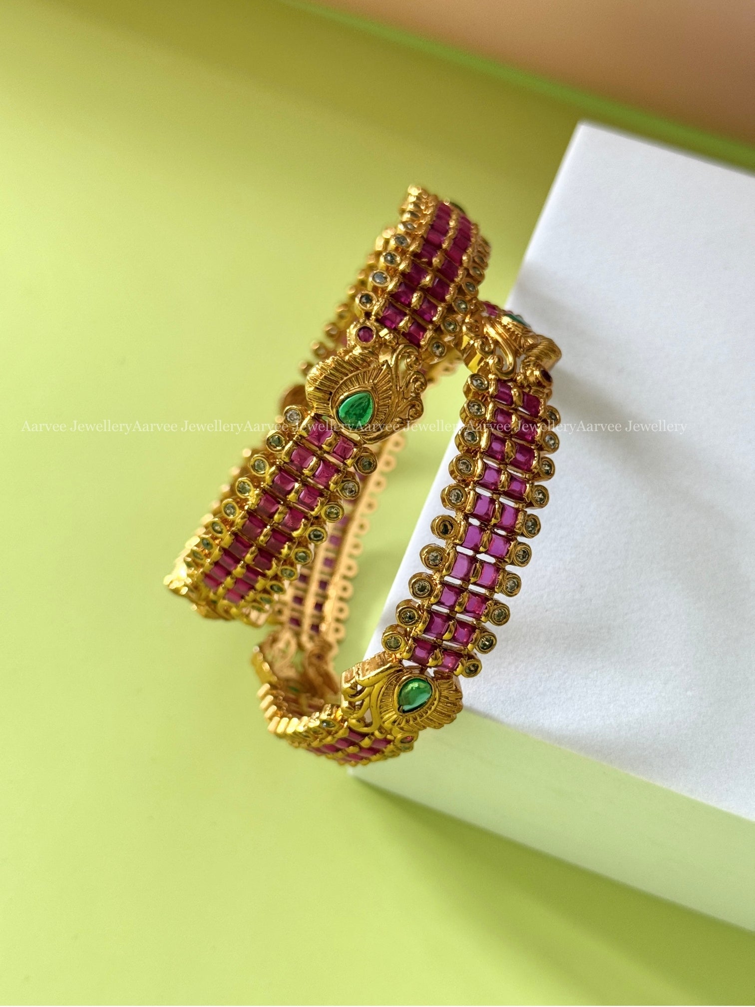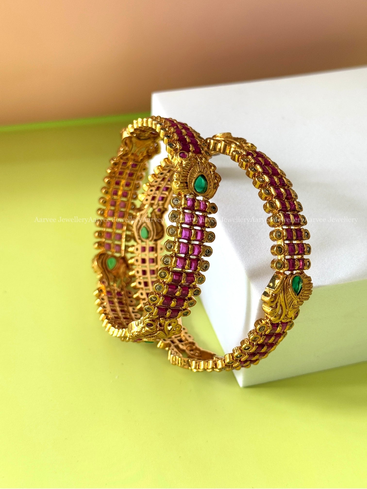 Beautiful Pair of Kemp Stone Bangles Adorned with Pink and Green Stones