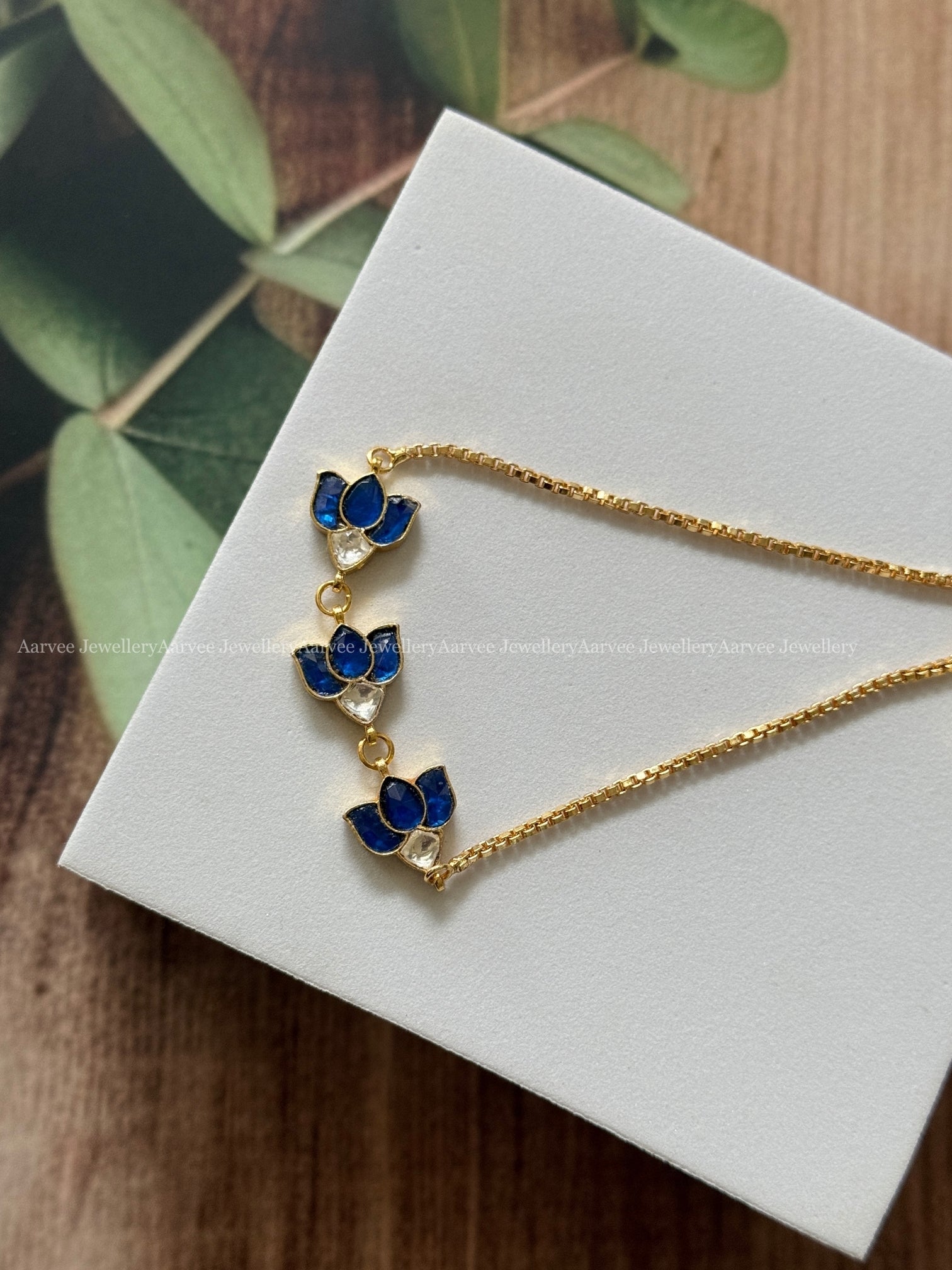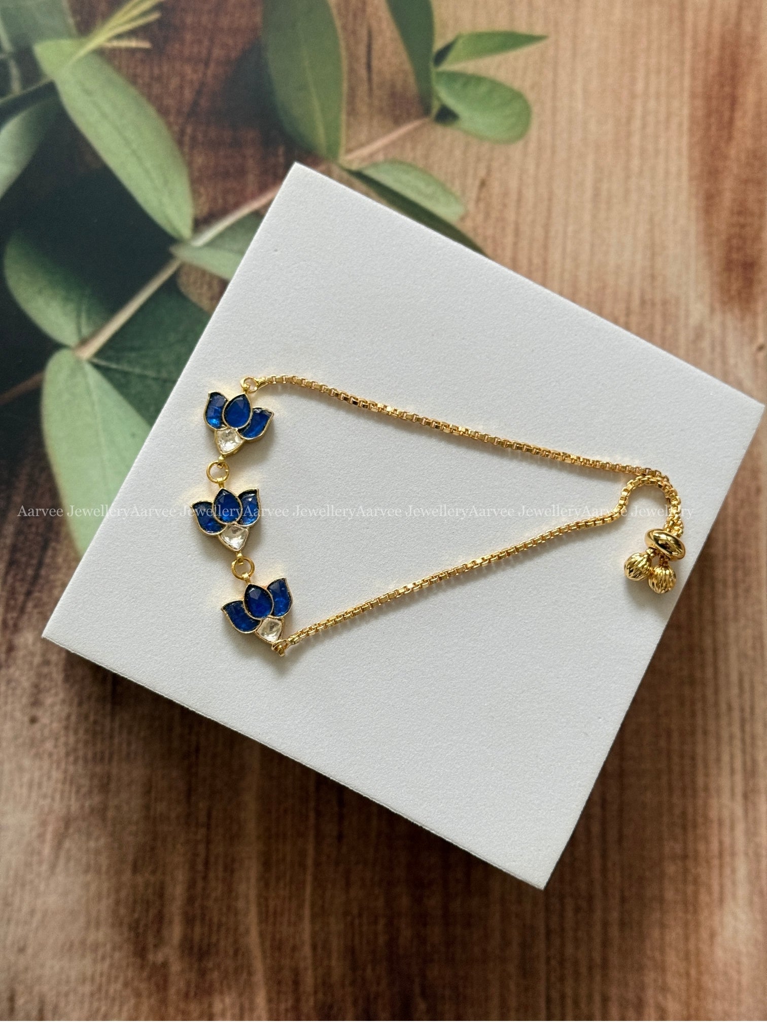 KUNDAN BLUE / WHITE STONE LOTUS BRACELET