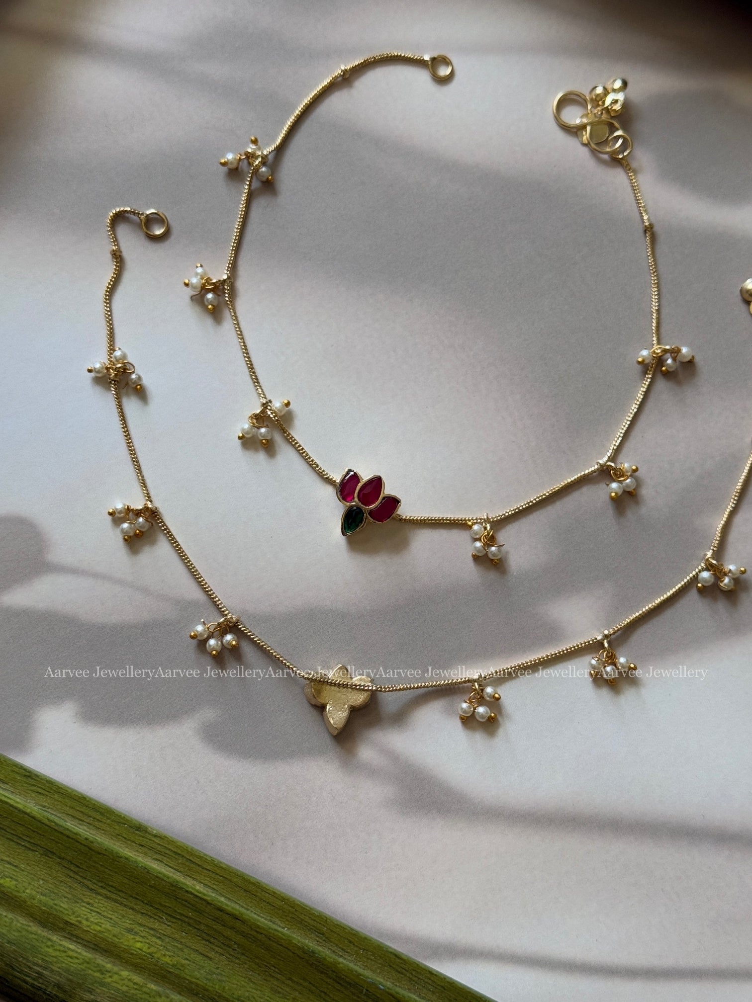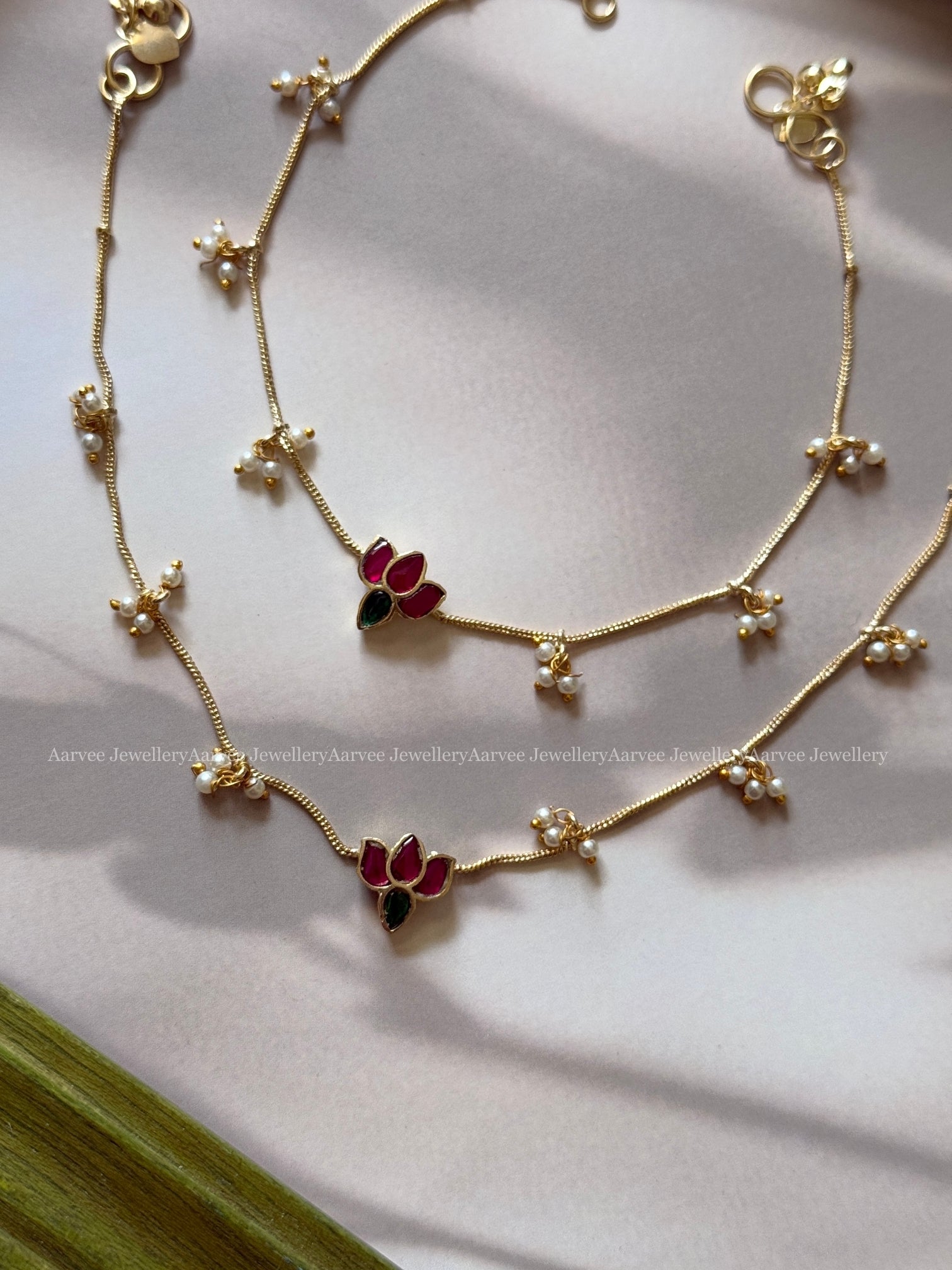 Graceful Anklet Adorned with Sparkling Kundan Stones and Lotus Design