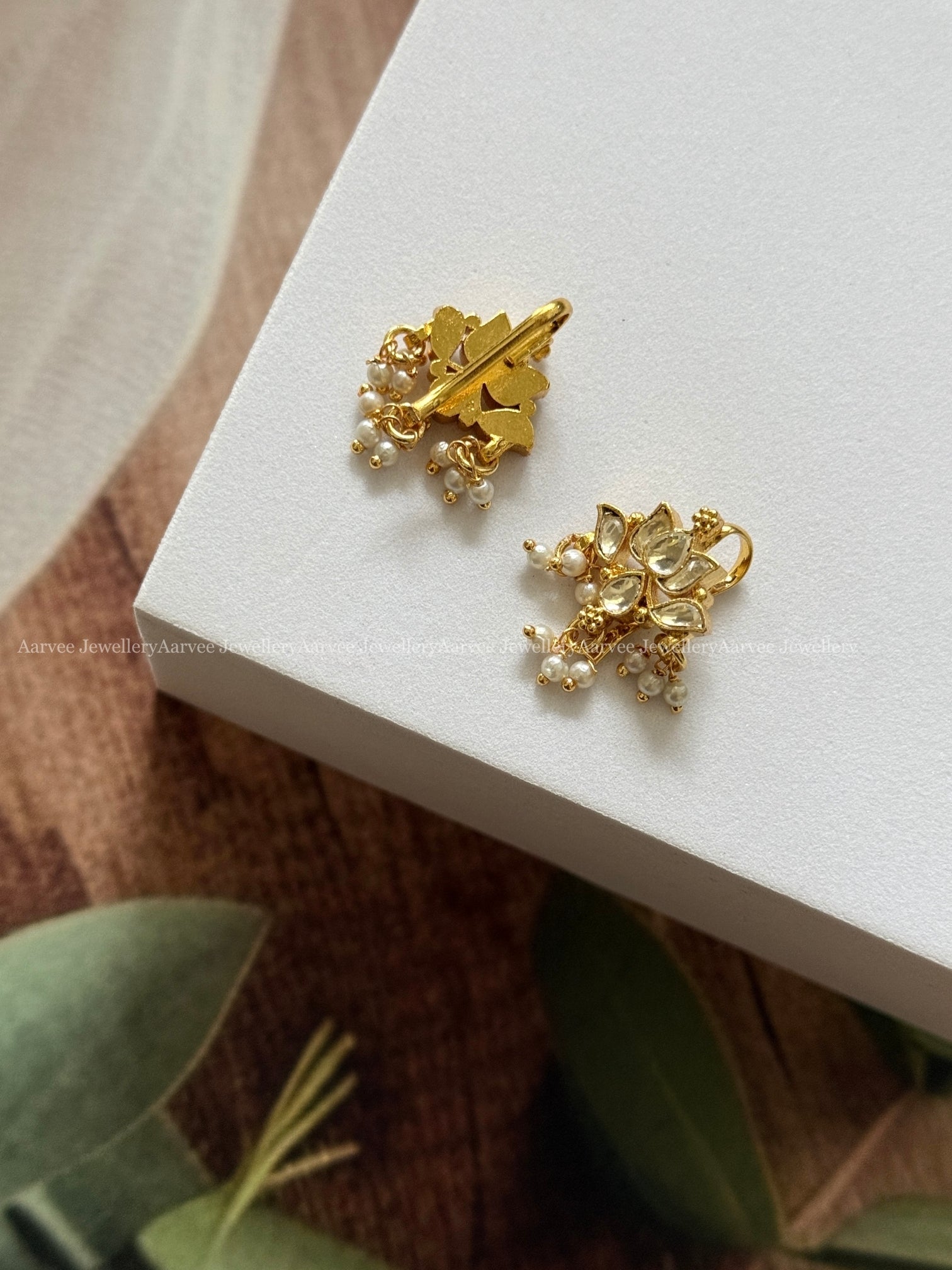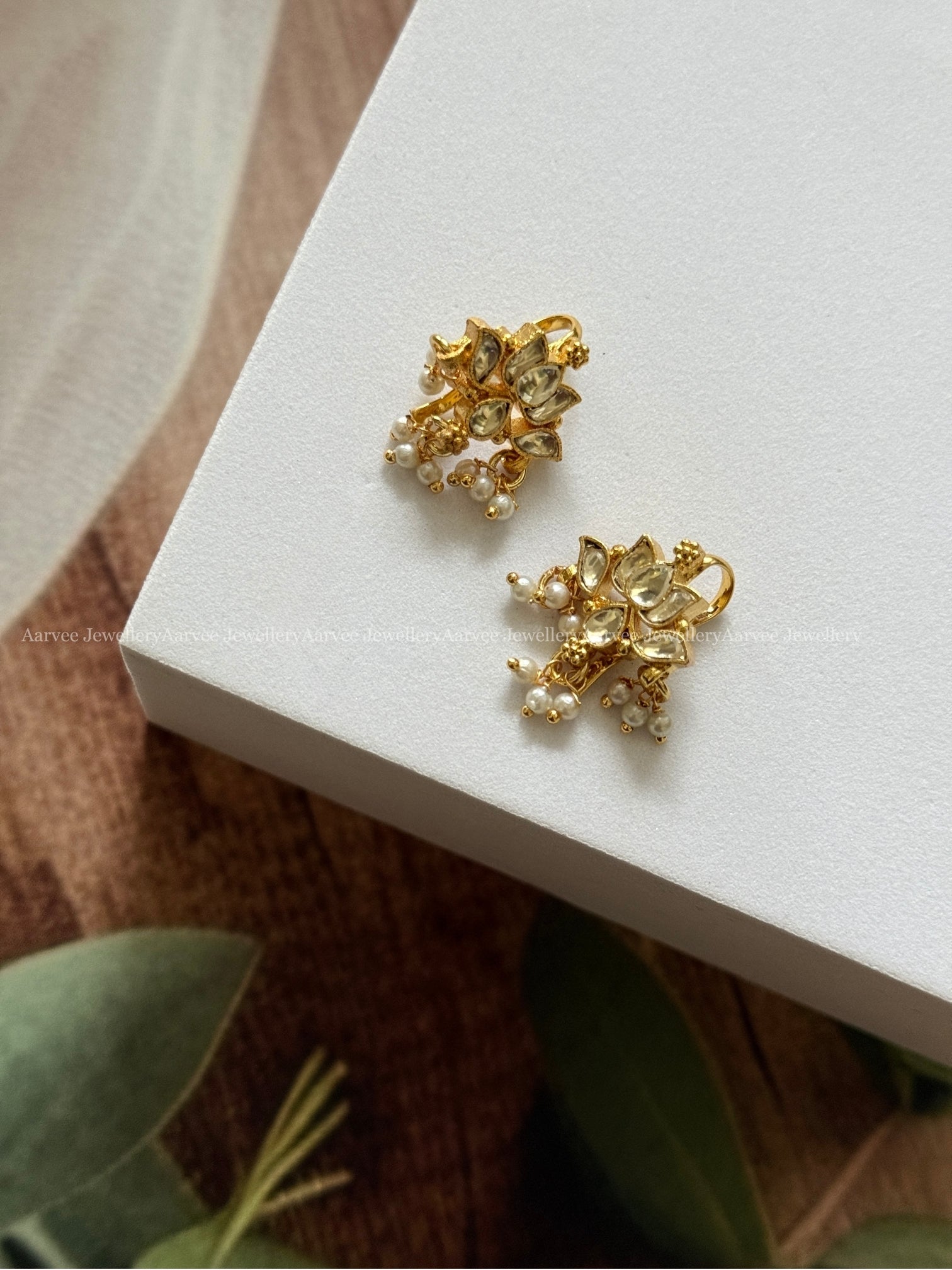 LOTUS EAR CUFF / BUGADI WITH KUNDAN WHITE STONES