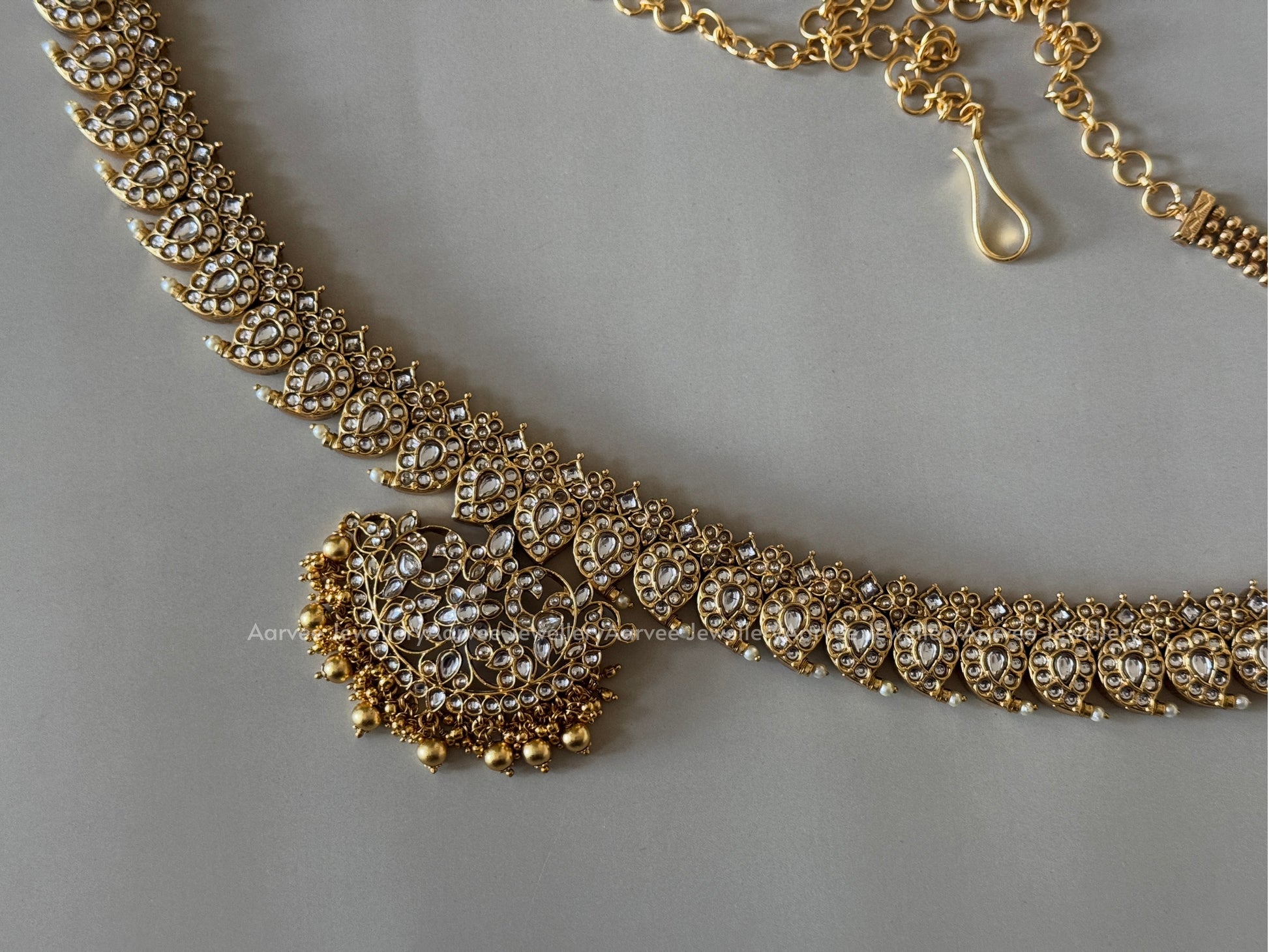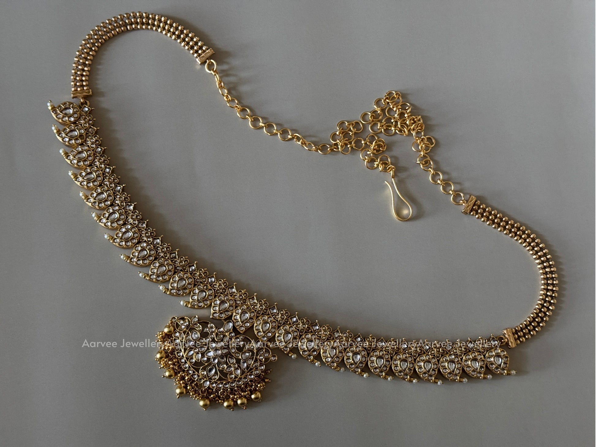 MANGO MOTIF KUNDAN WHITE STONES WAIST CHAIN WITH GOLD BEADS
