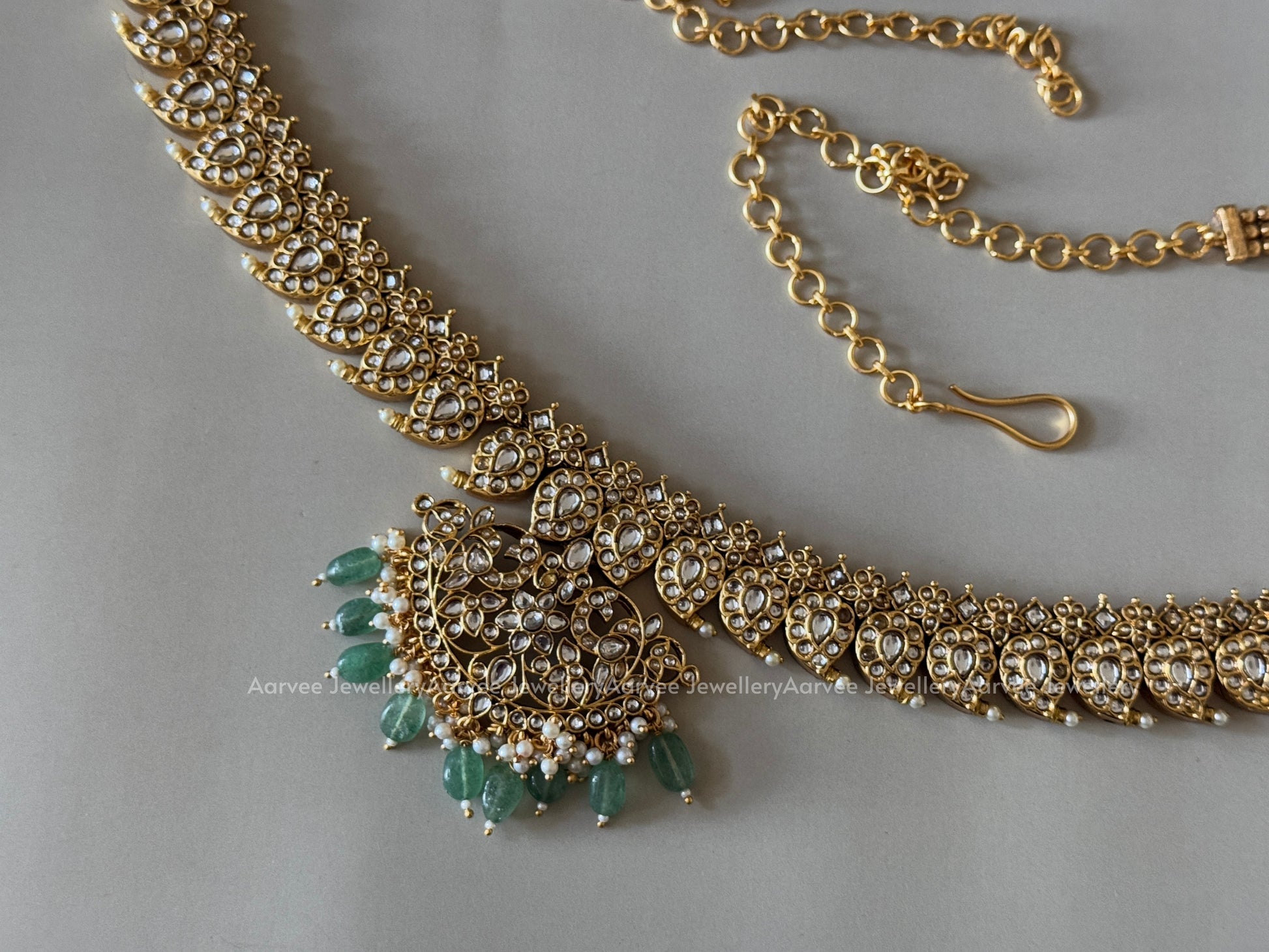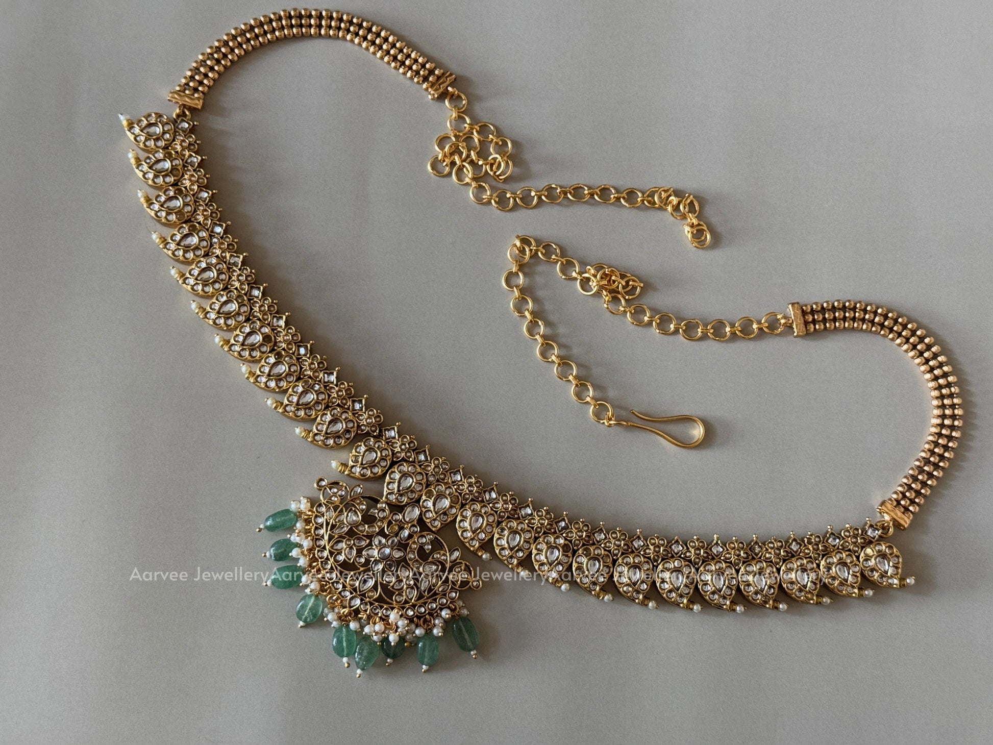 MANGO MOTIF KUNDAN WHITE STONES WAIST CHAIN WITH PASTEL BEADS