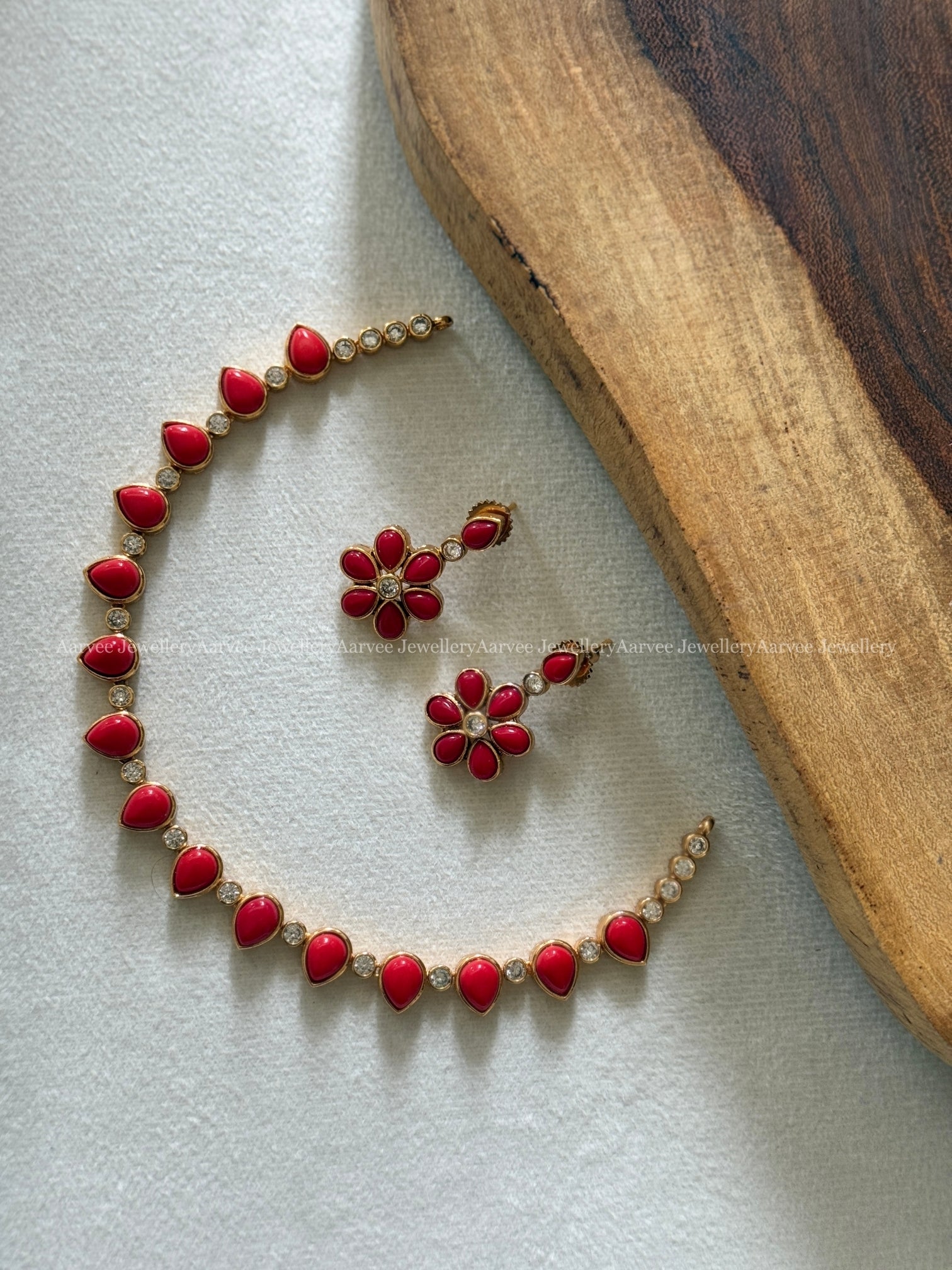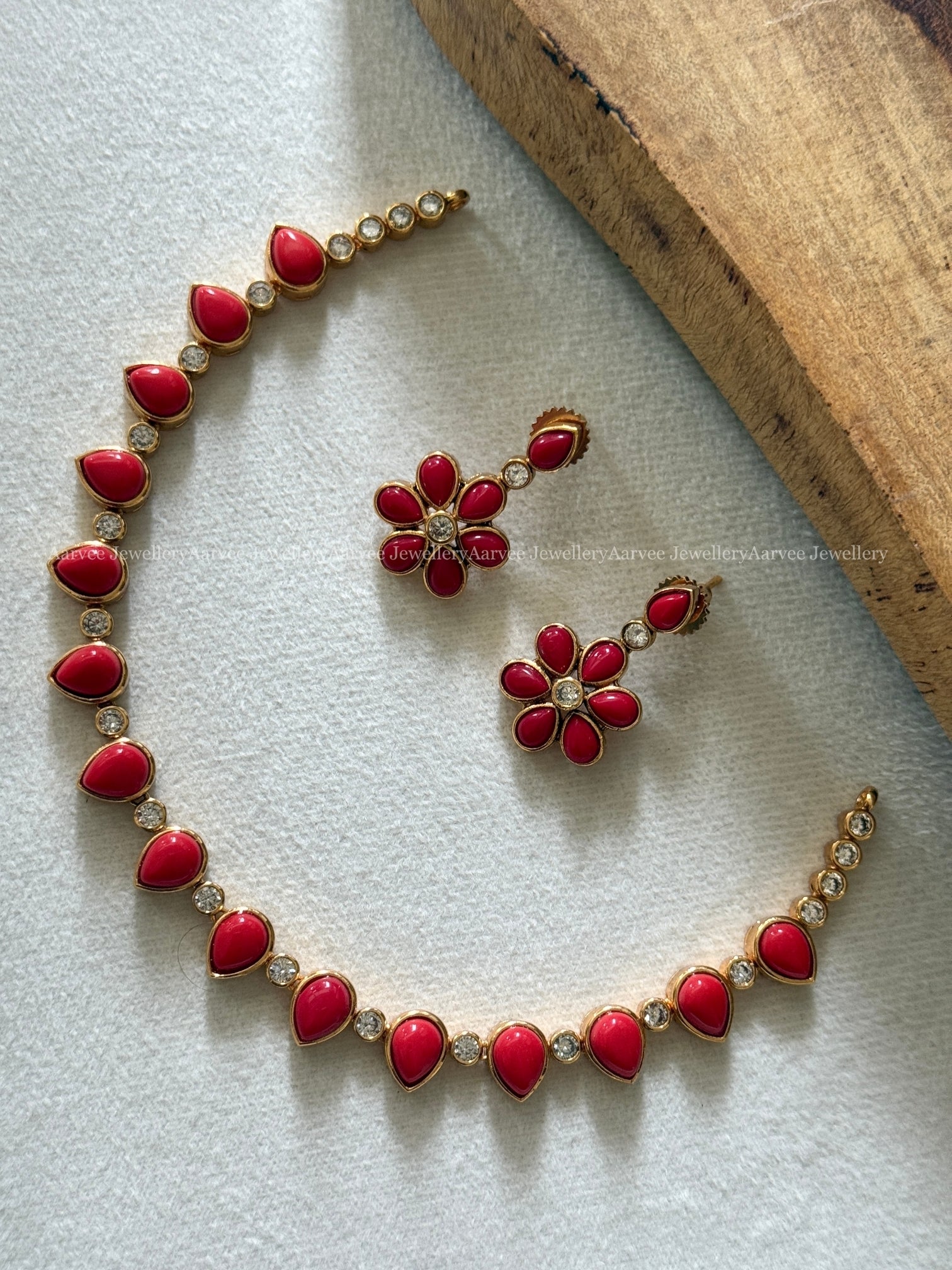 MINIMAL CORAL STONE FLORAL NECKLACE SET