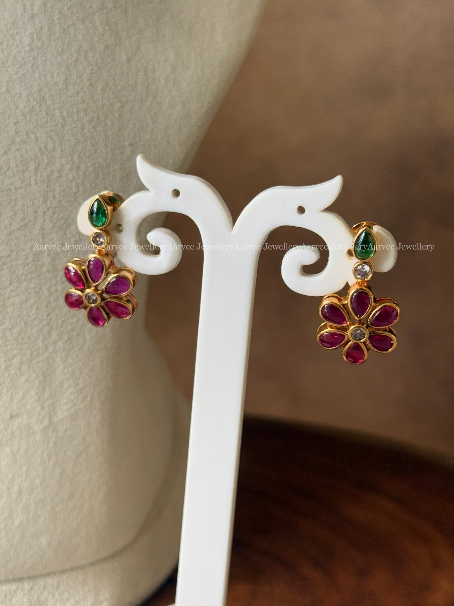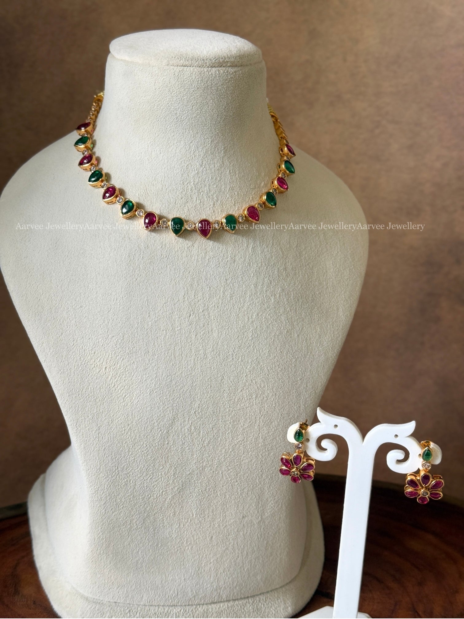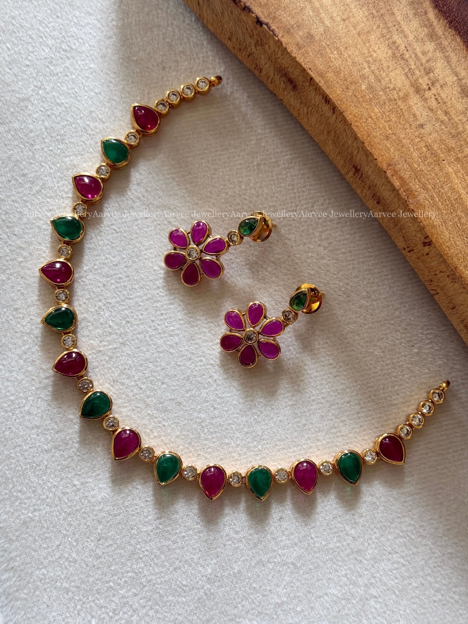 MINIMAL RUBY / GREEN STONE FLORAL NECKLACE SET