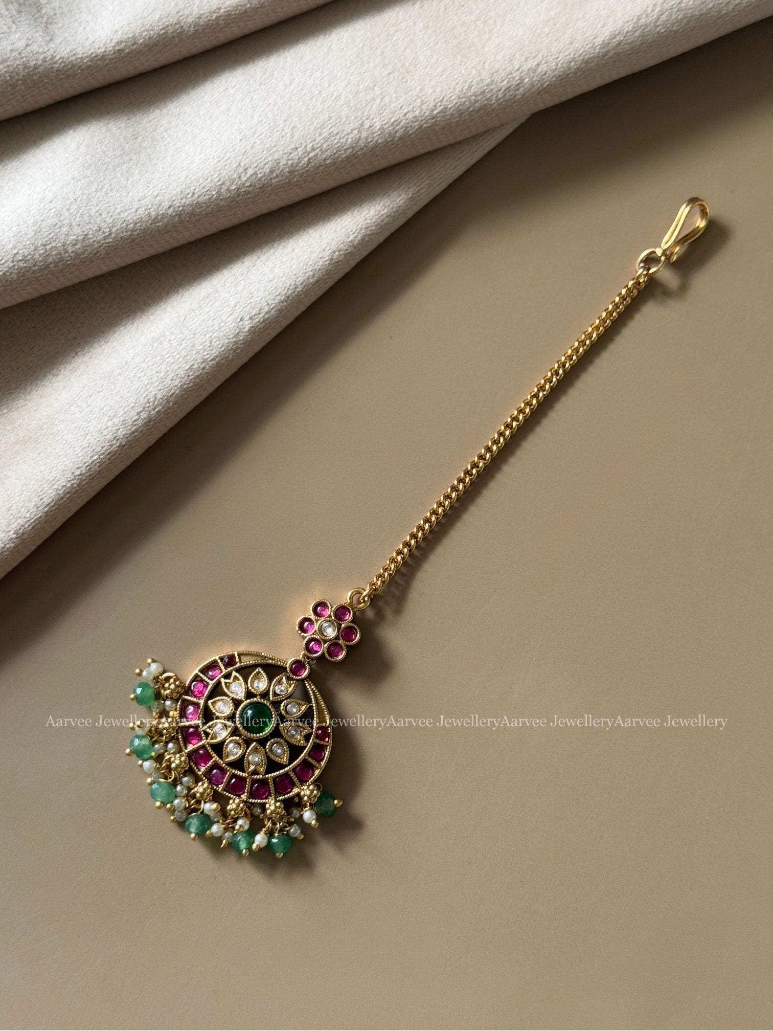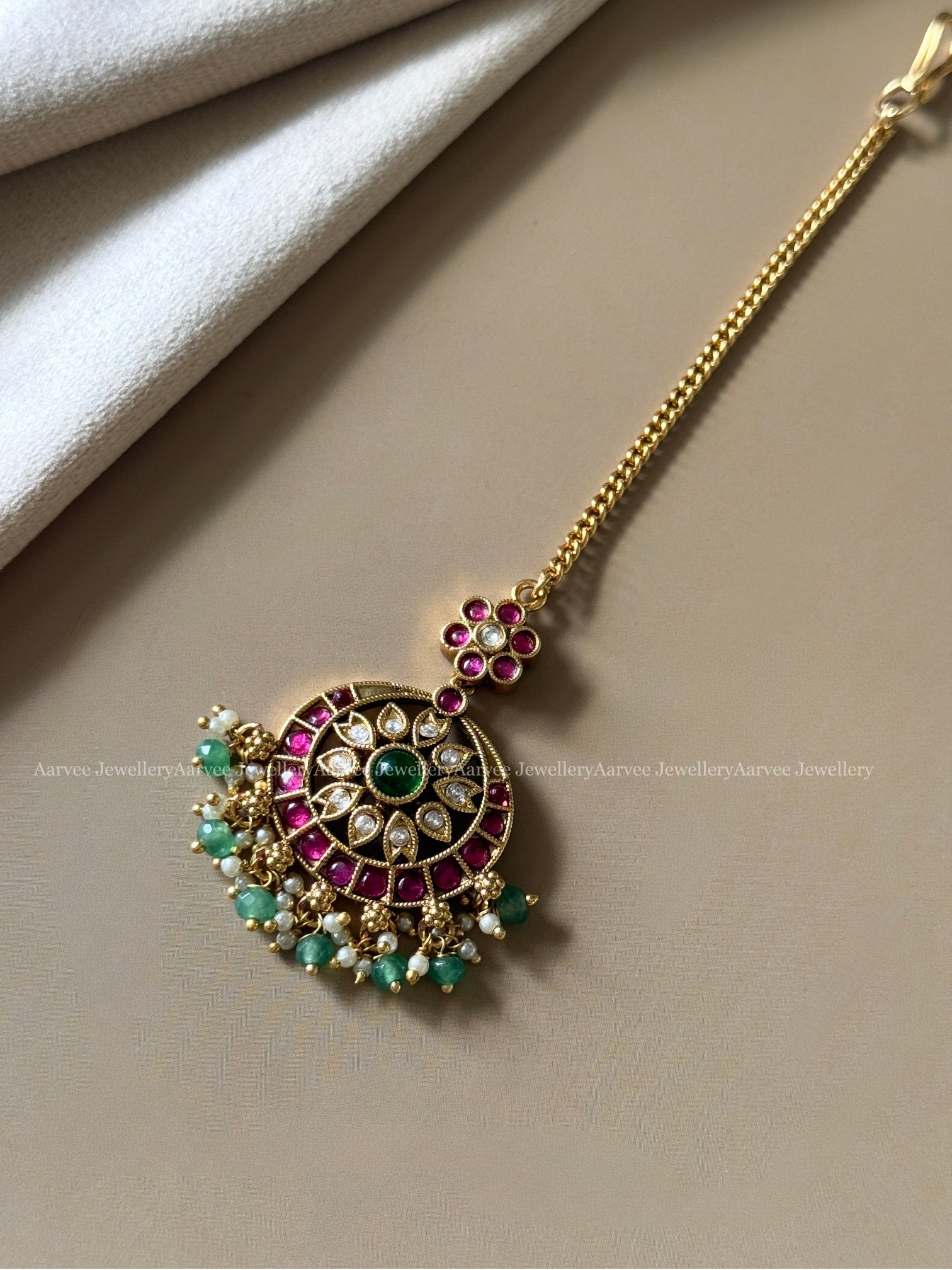 MULTI COLOR KEMP STONE MANGTIKKA WITH PASTEL BEADS