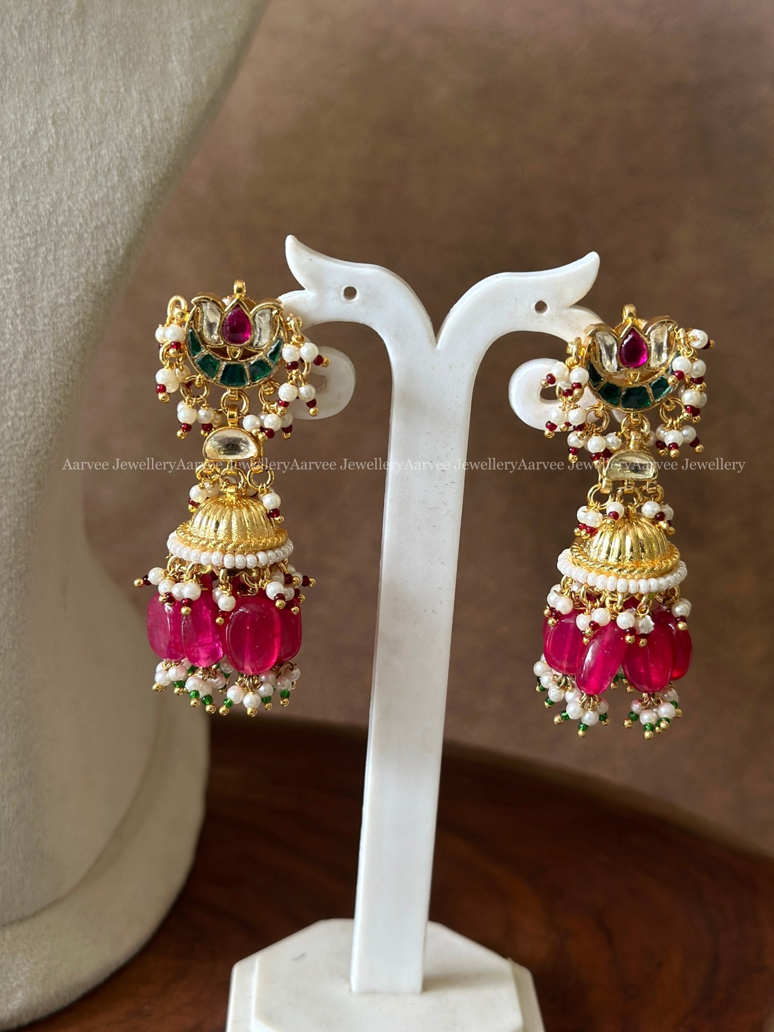 POLKI KUNDAN GREEN & WHITE STONES NECKALCE SET WITH RUBY BEADS