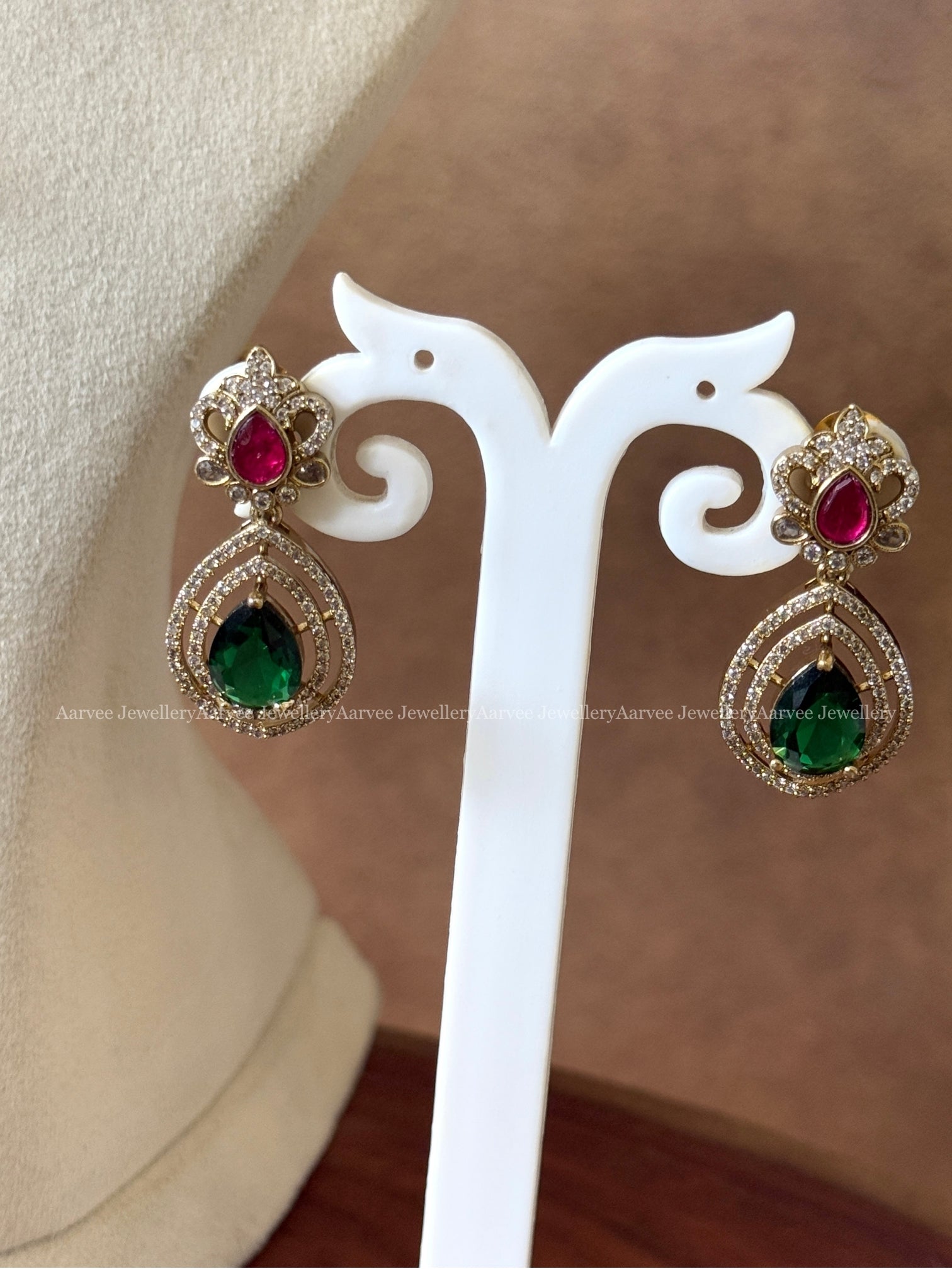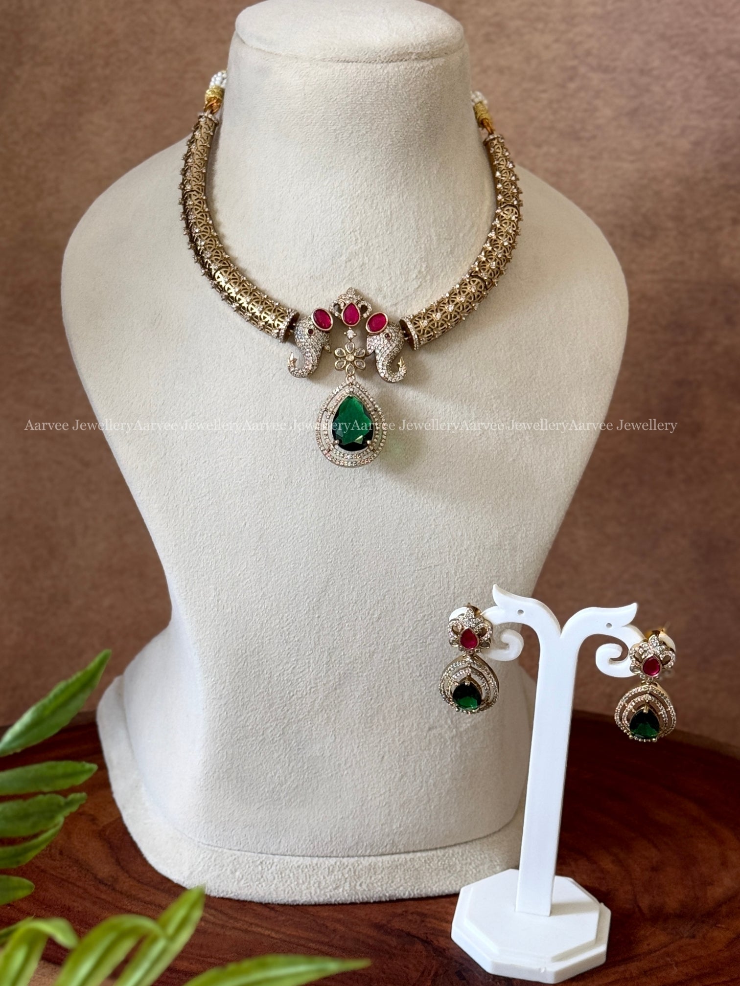 CZ STONES KANTI NECKLACE SET WITH ELEPHANT MOTIF PENDANT