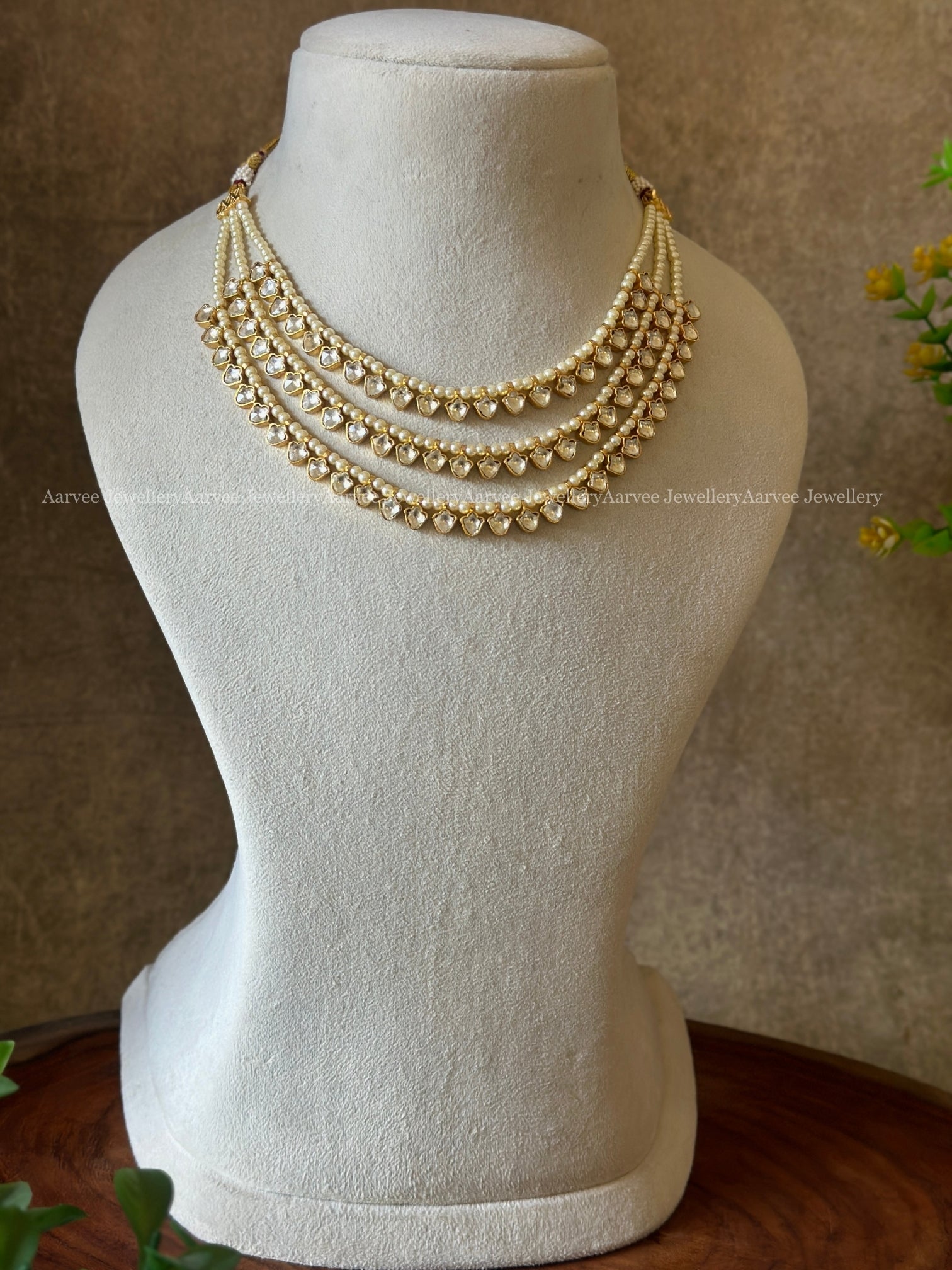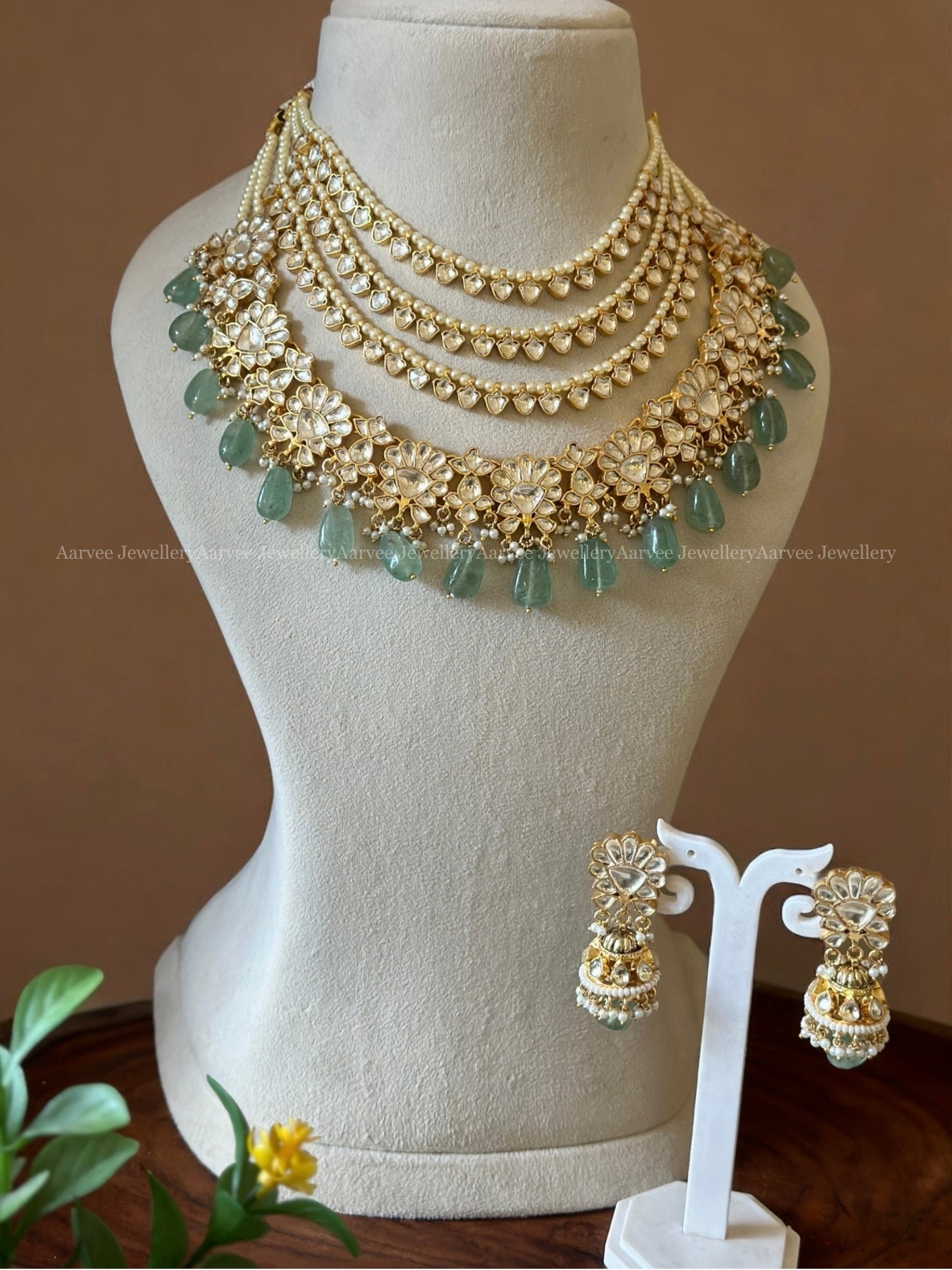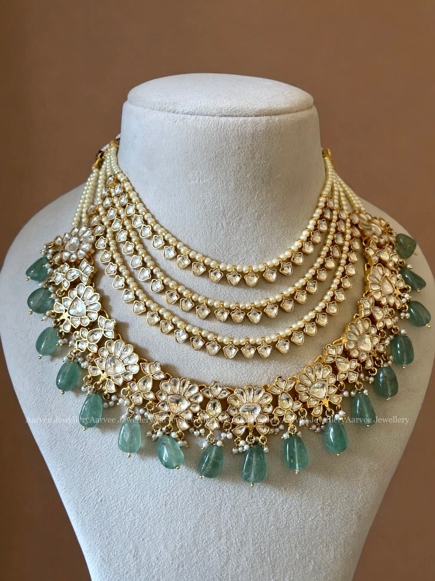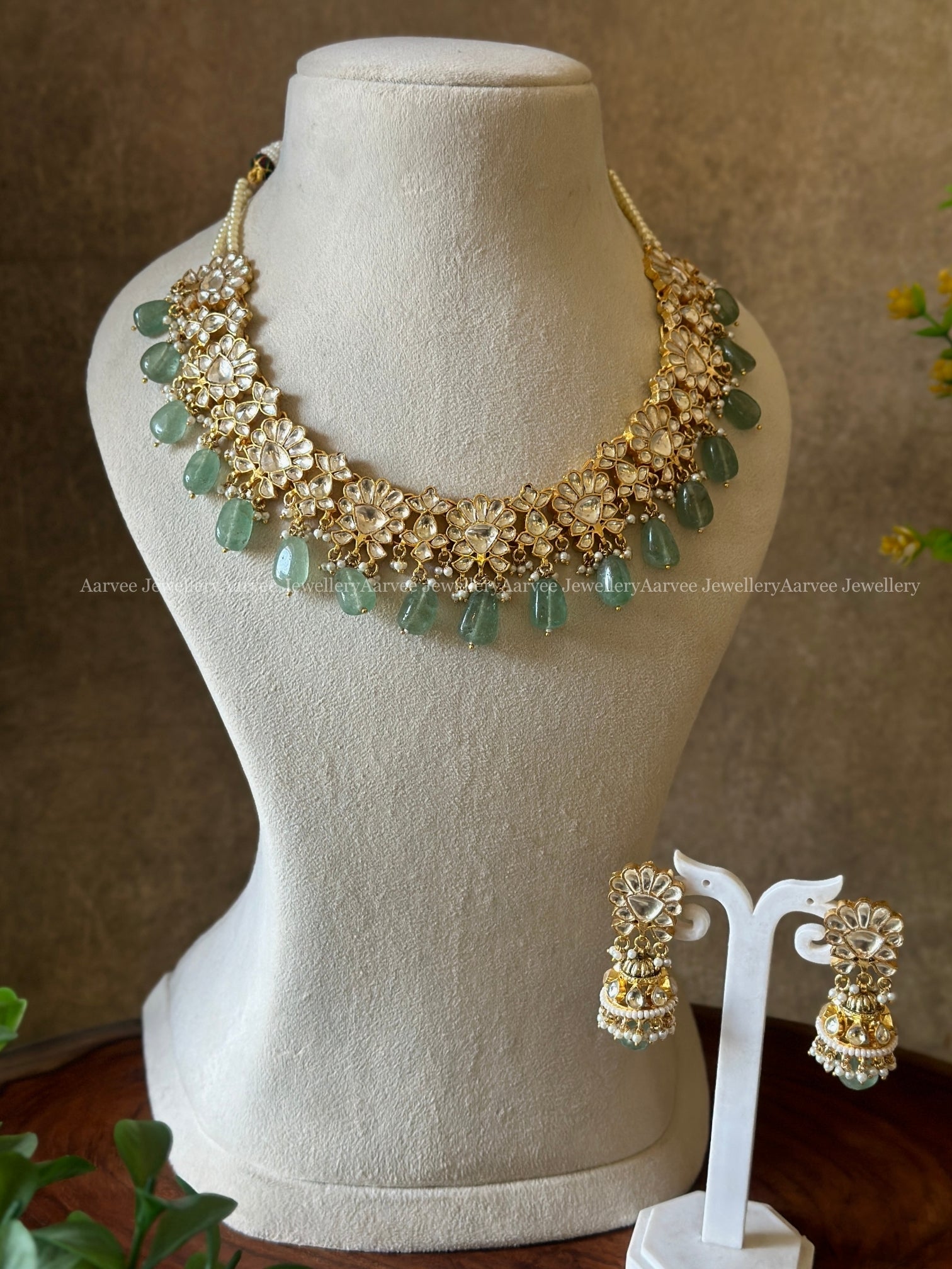 Elegant and adaptable Polki Kundan necklace set highlighted by charming pastel bead embellishments