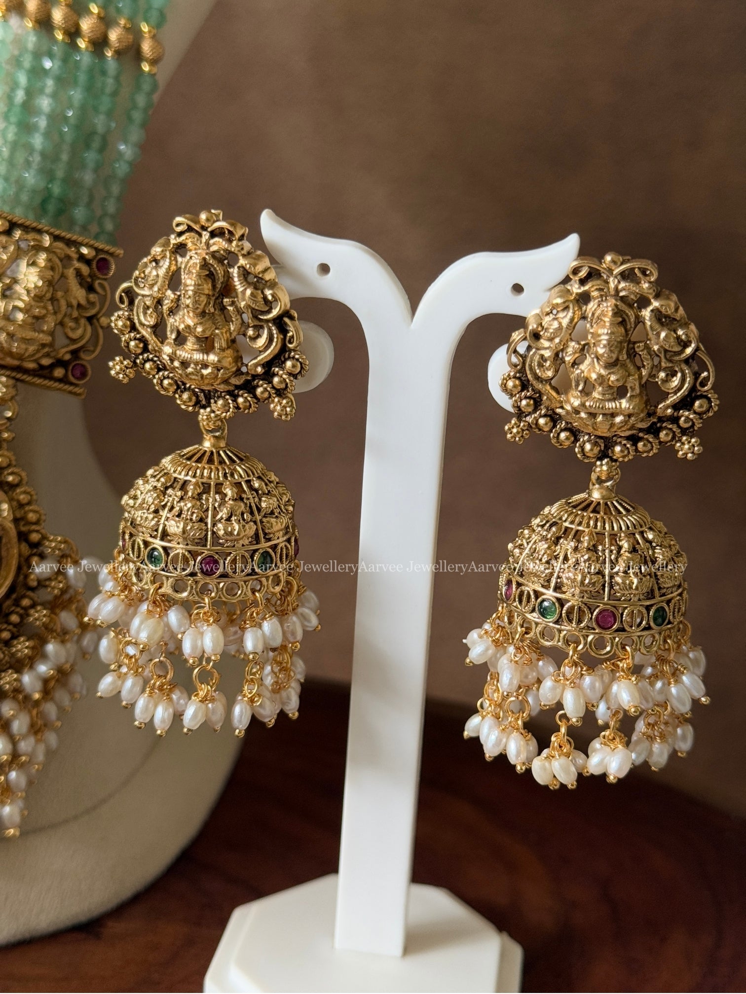 PASTEL BEADED MID LENGTH CHAIN SET WITH BOLD LAKSHMI PENDANT