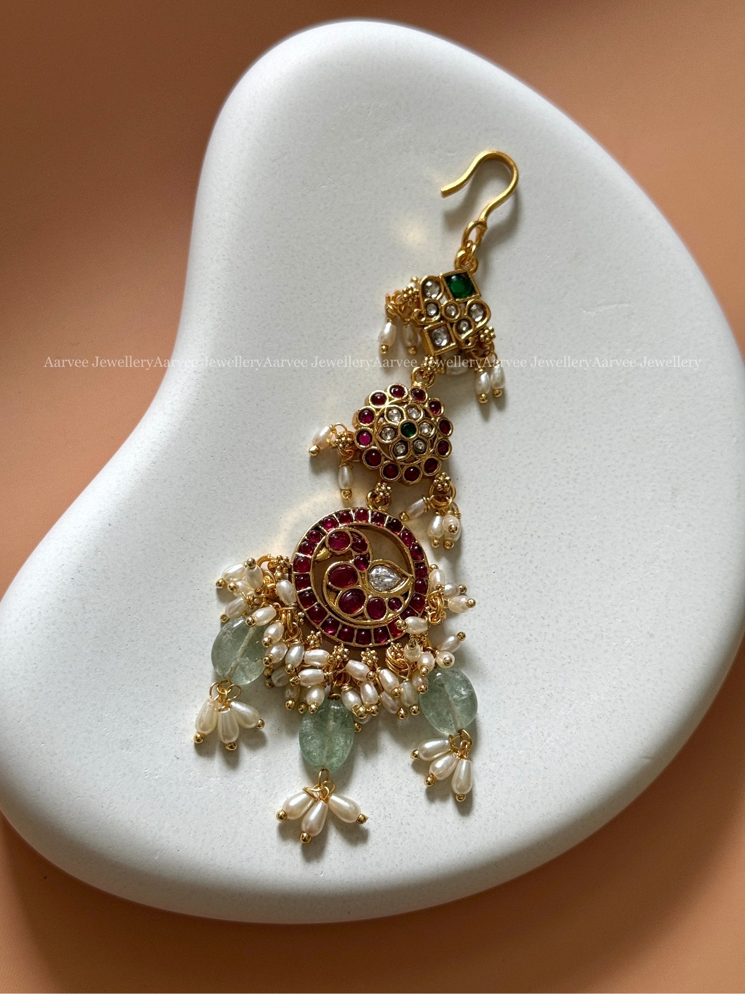 PEACOCK KEMP STONES TIKKA WITH LIGHT PASTEL BEADS