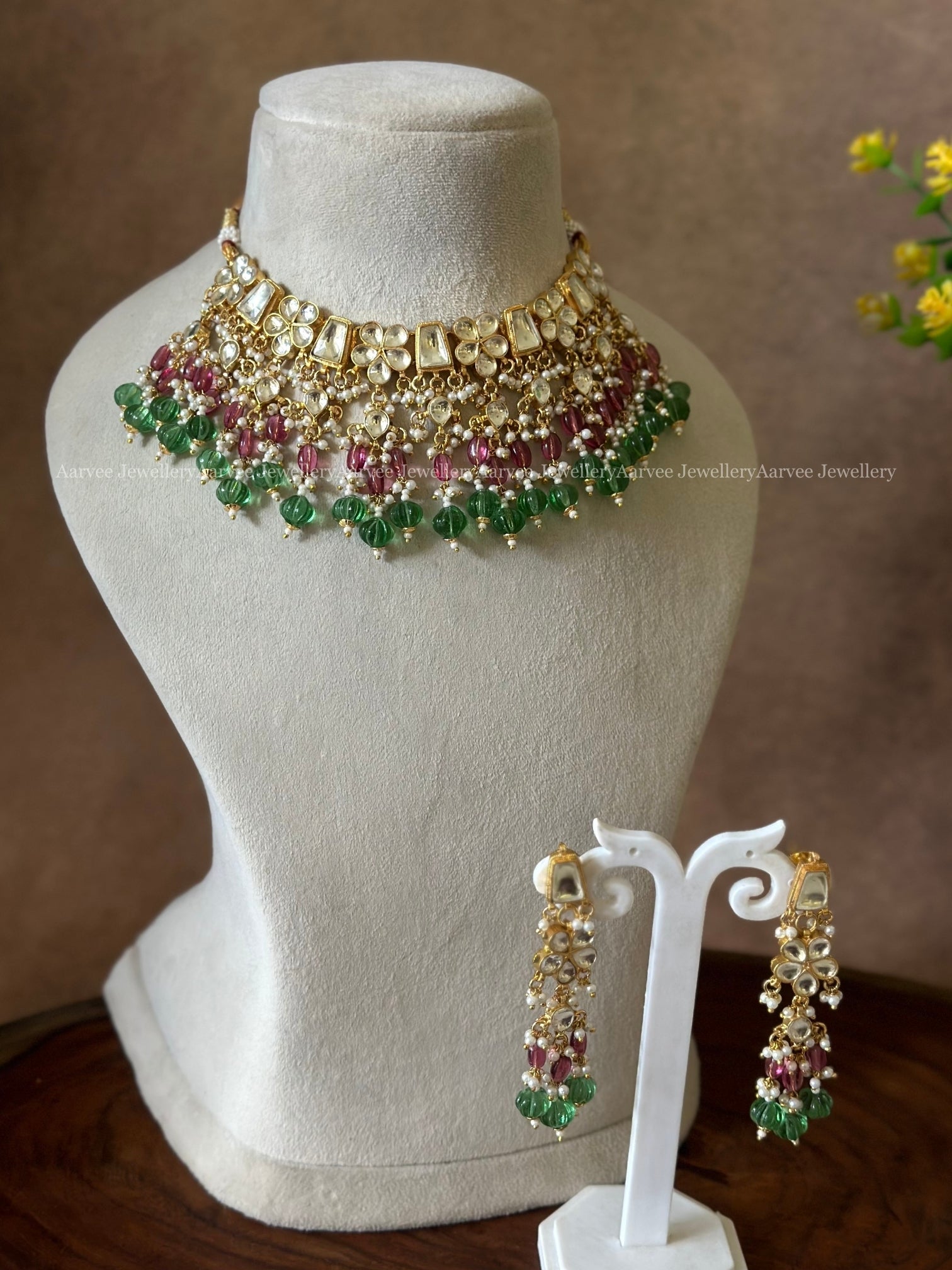 POLKI KUNDAN CHOKER SET WITH DUAL COLOR BEADS