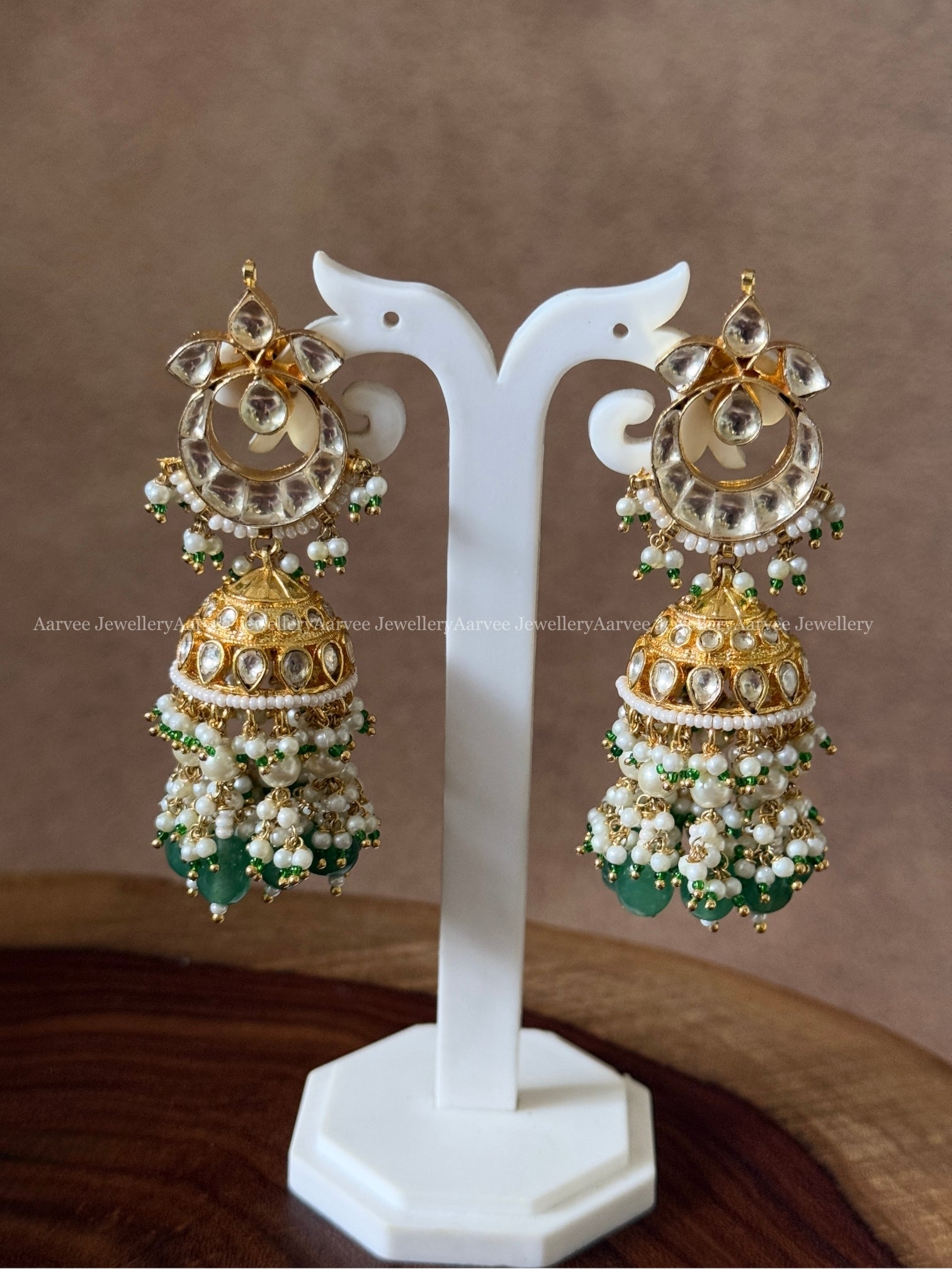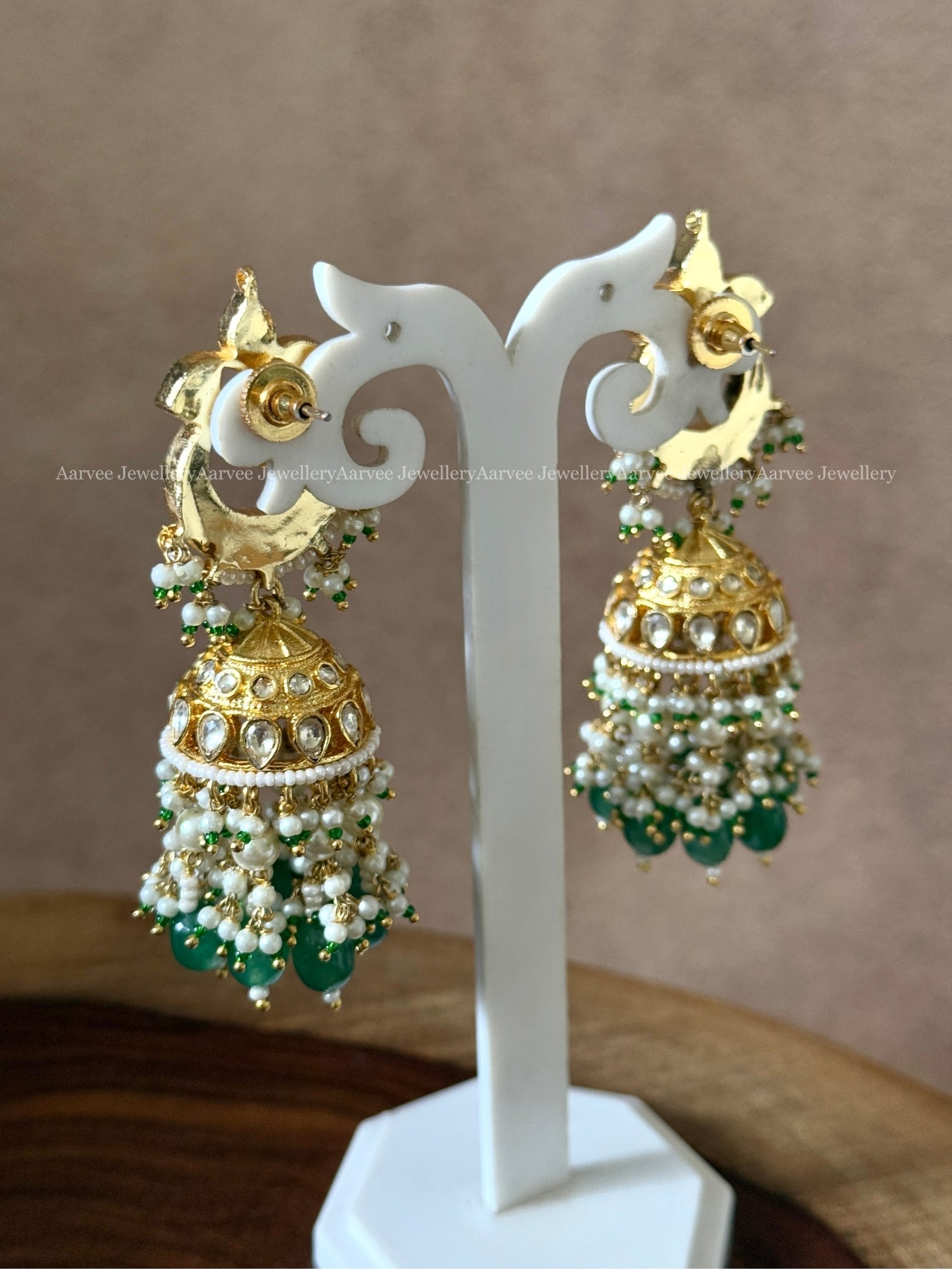 POLKI KUNDAN GOLD TONE JHUMKI WITH PASTEL BEADS