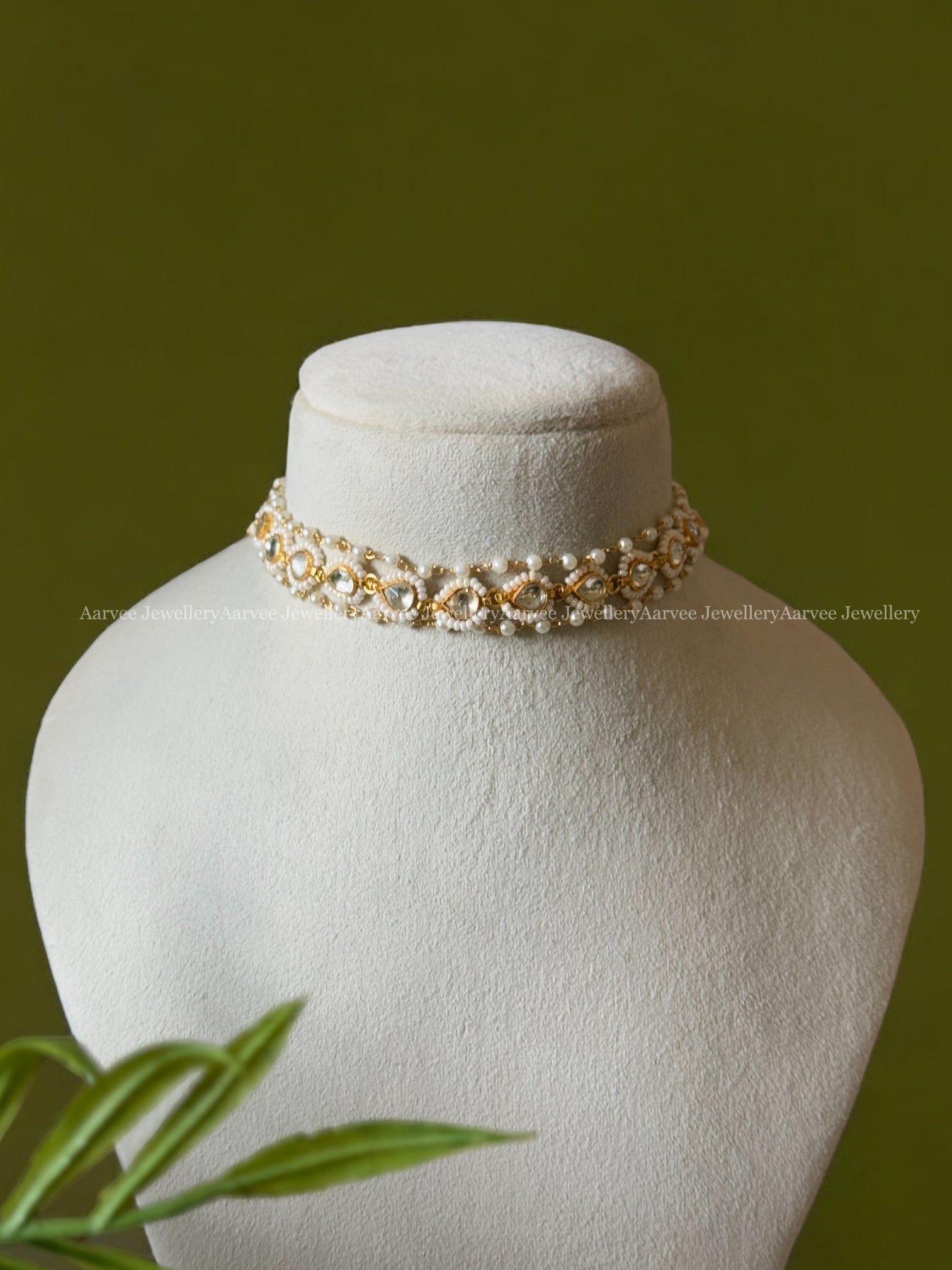 Pearl-Beaded Polki Kundan Choker with Classic White Stone Detail