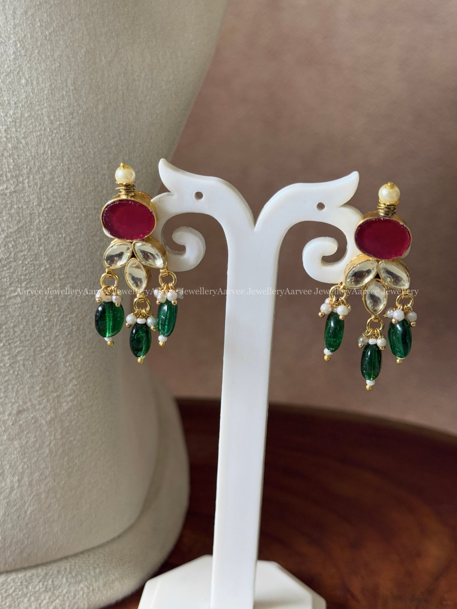 POLKI KUNDAN - RUBY STONE NECKLACE SET WITH DARK GREEN BEADS