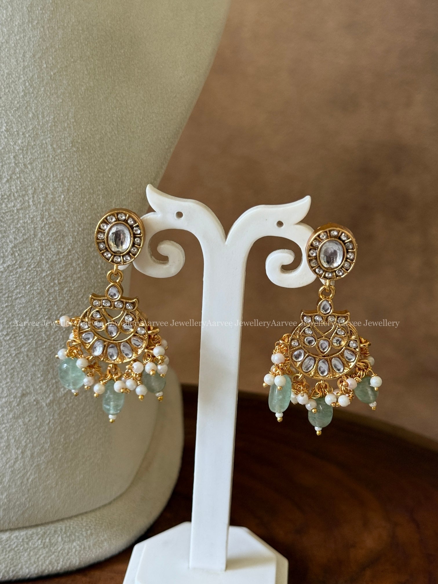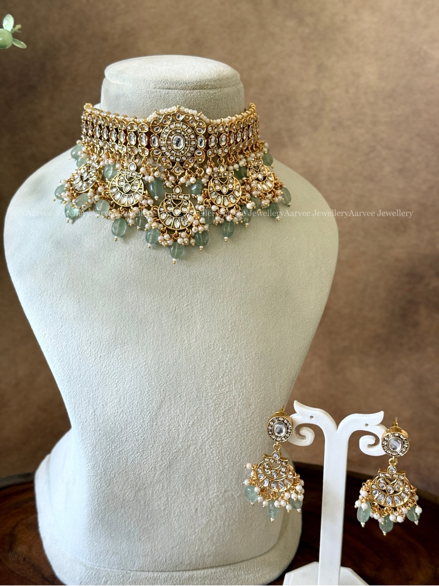 PREMIUM KEMP WHITE STONES MULTI PENDANT CHOKER SET WITH PASTEL BEADS