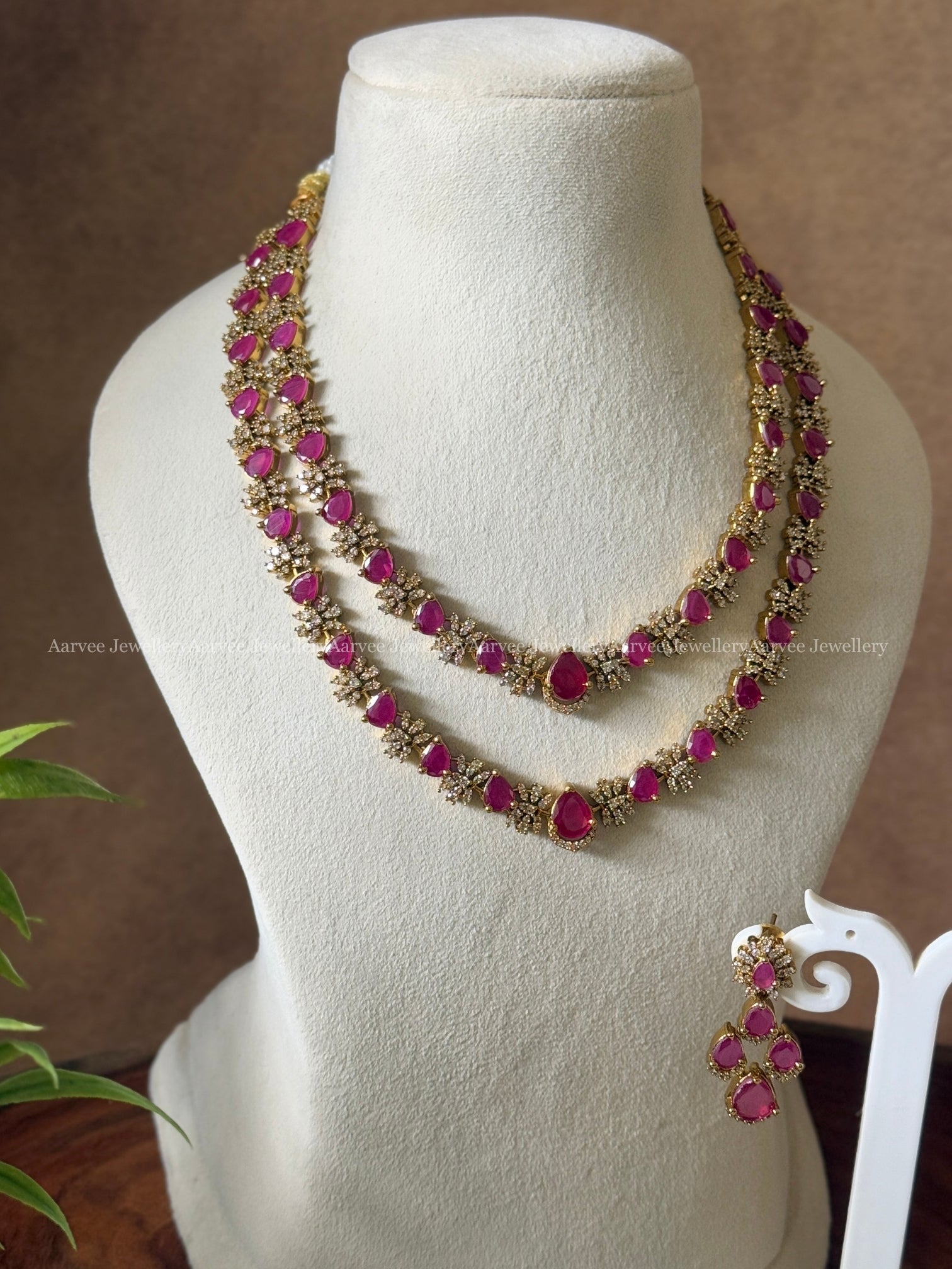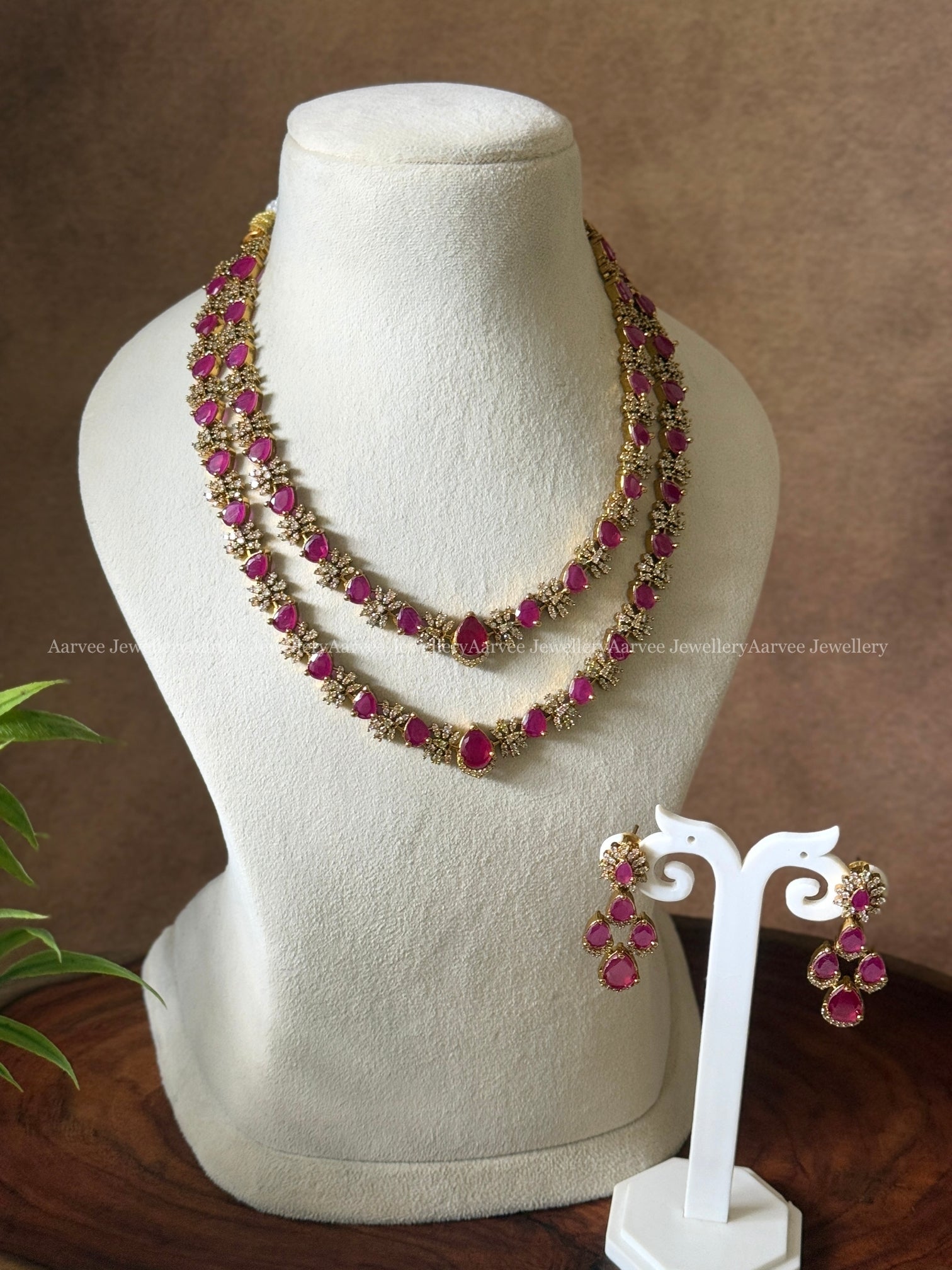 RUBY STONES VICTORIAN TWO LAYERED NECKLACE SET