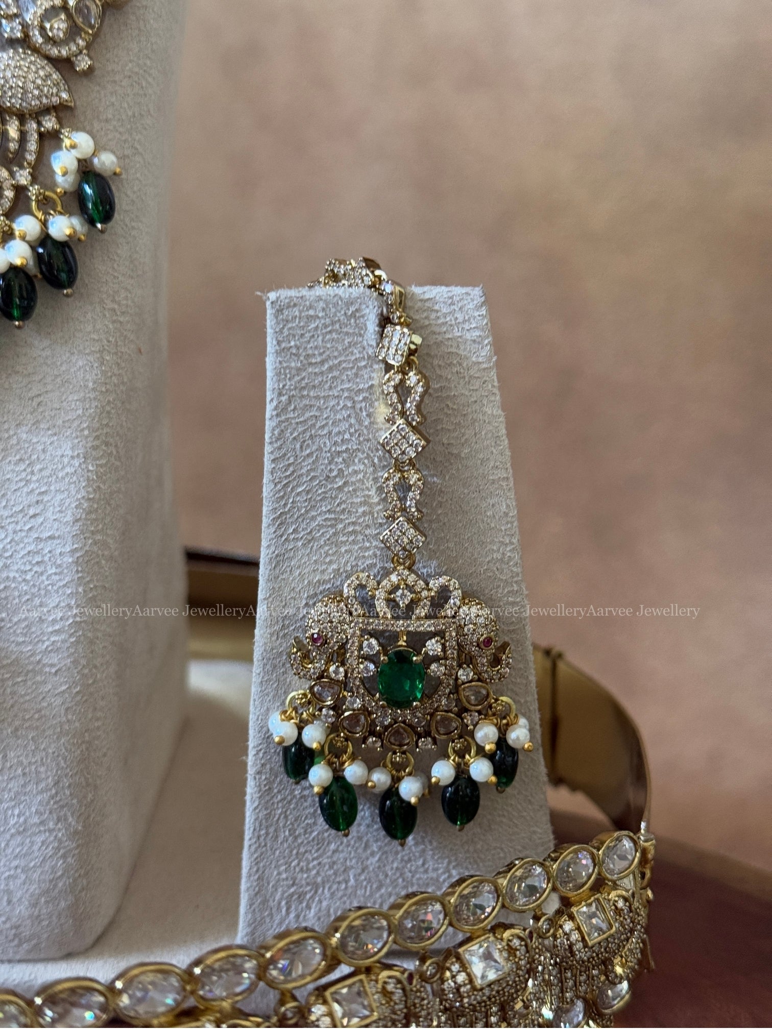 VICTORIAN BRIDAL JEWELLERY SET — GREEN BEADS