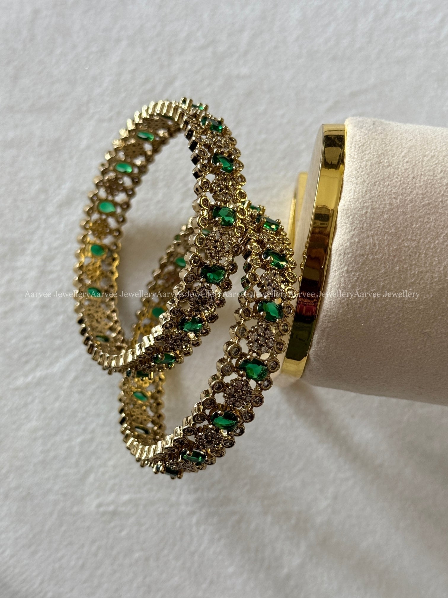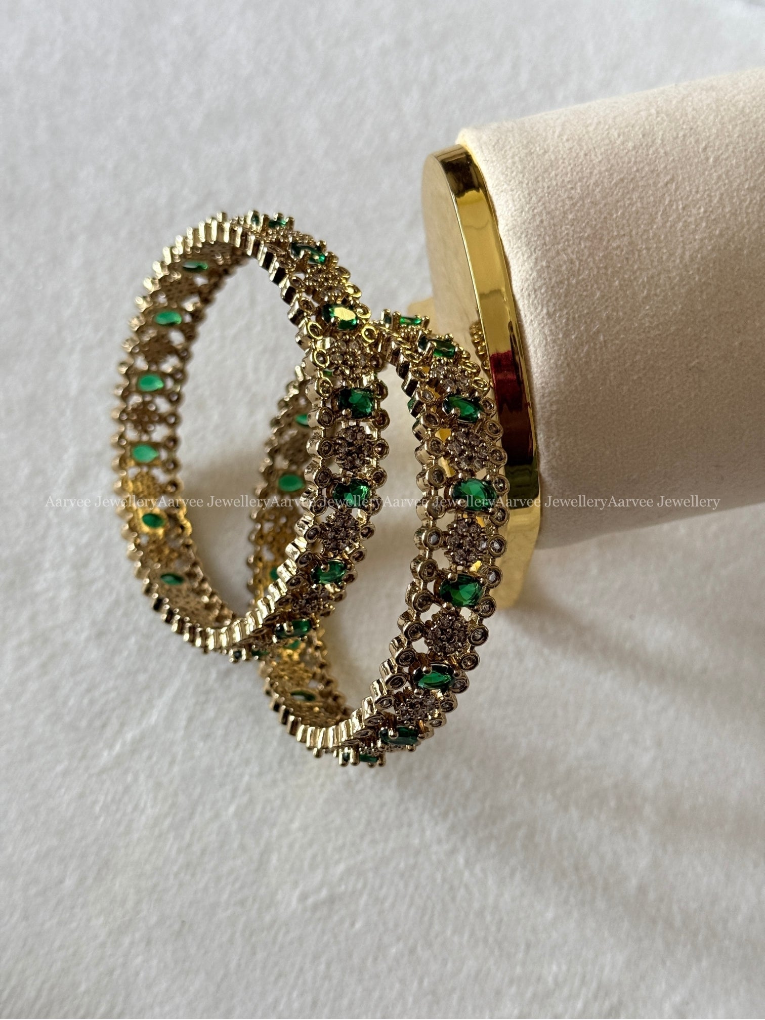Exquisite Victorian Bangles Adorned with Green Gemstones