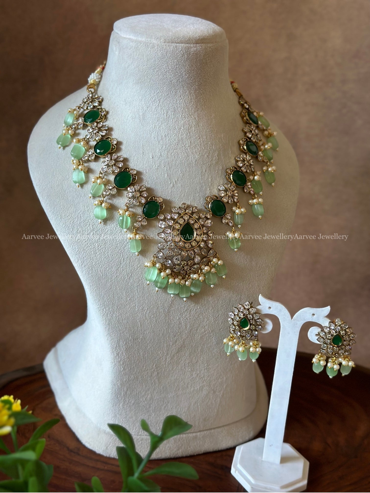 VICTORIAN GREEN STONE NECKLACE SET WITH LIGHT GREEN BEADS