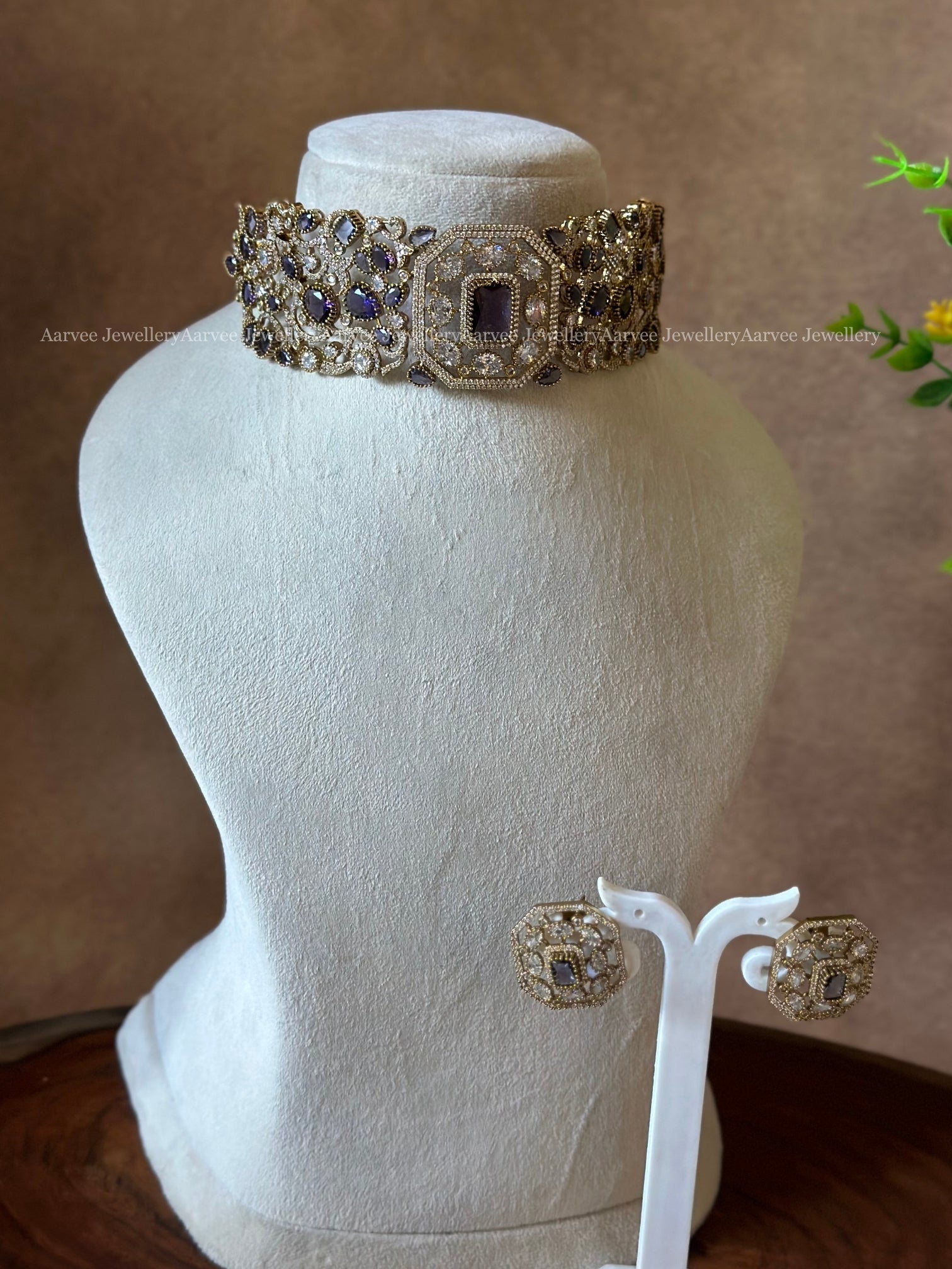 VICTORIAN HIGHNECK CHOKER SET WITH PURPLE STONES