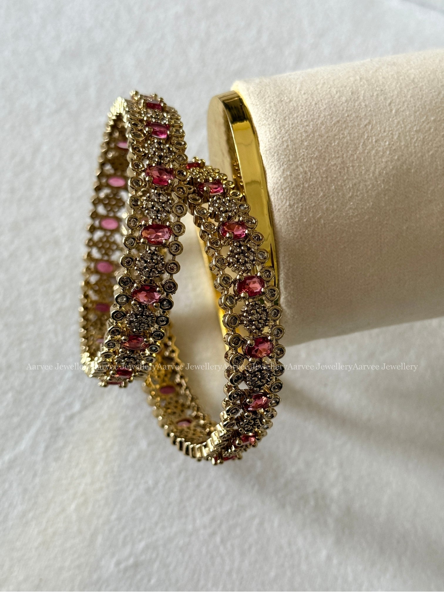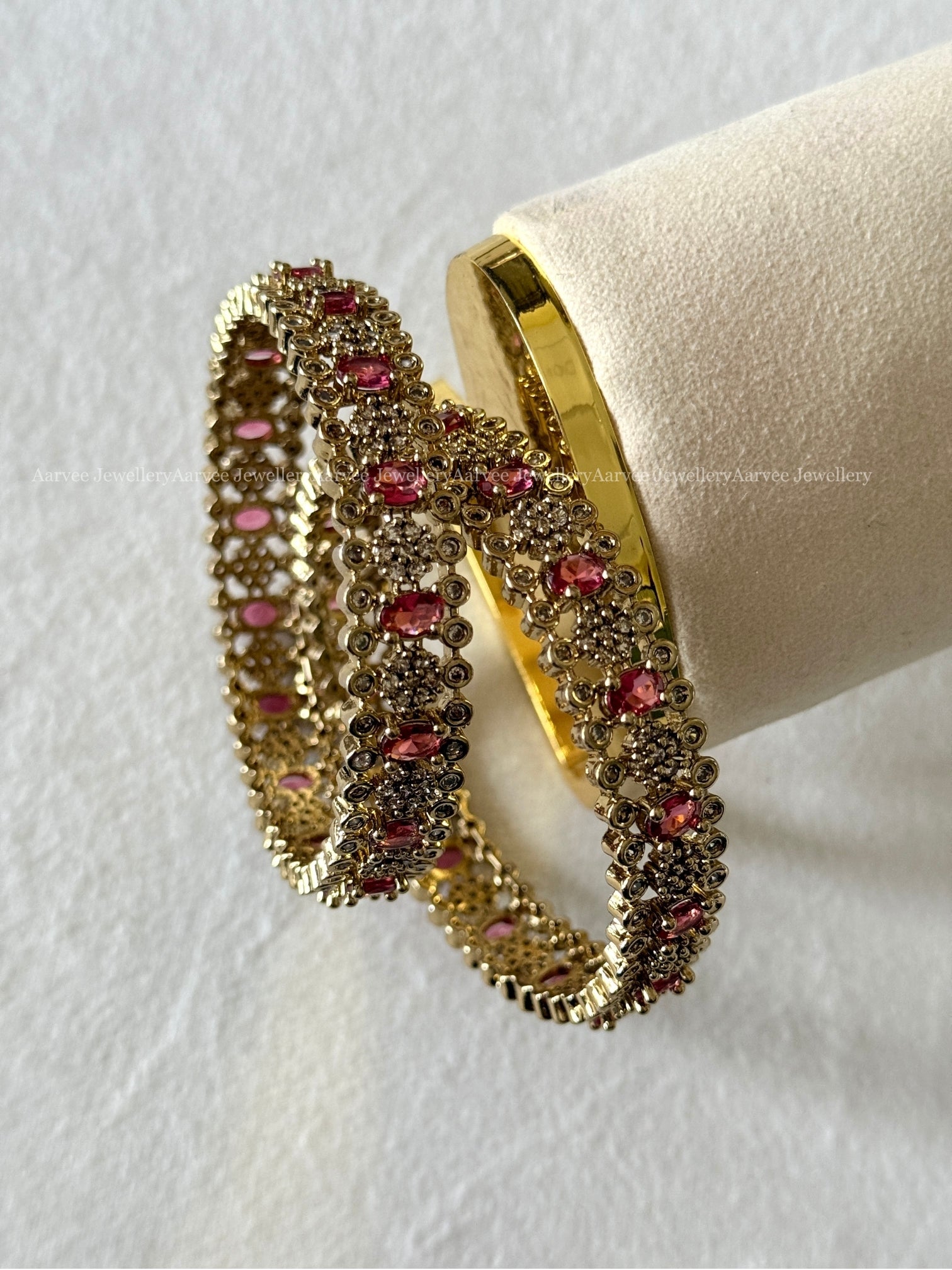 Antique-Inspired Ruby Stone Bangles in Victorian Finish