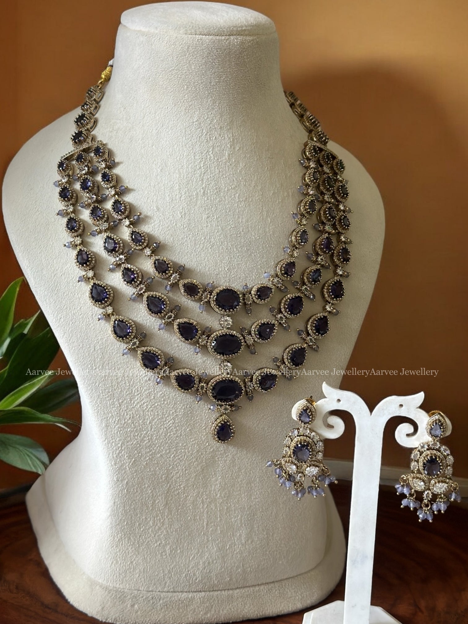 VICTORIAN THREE LAYERED NECKLACE SET WITH PURPLE BEADS