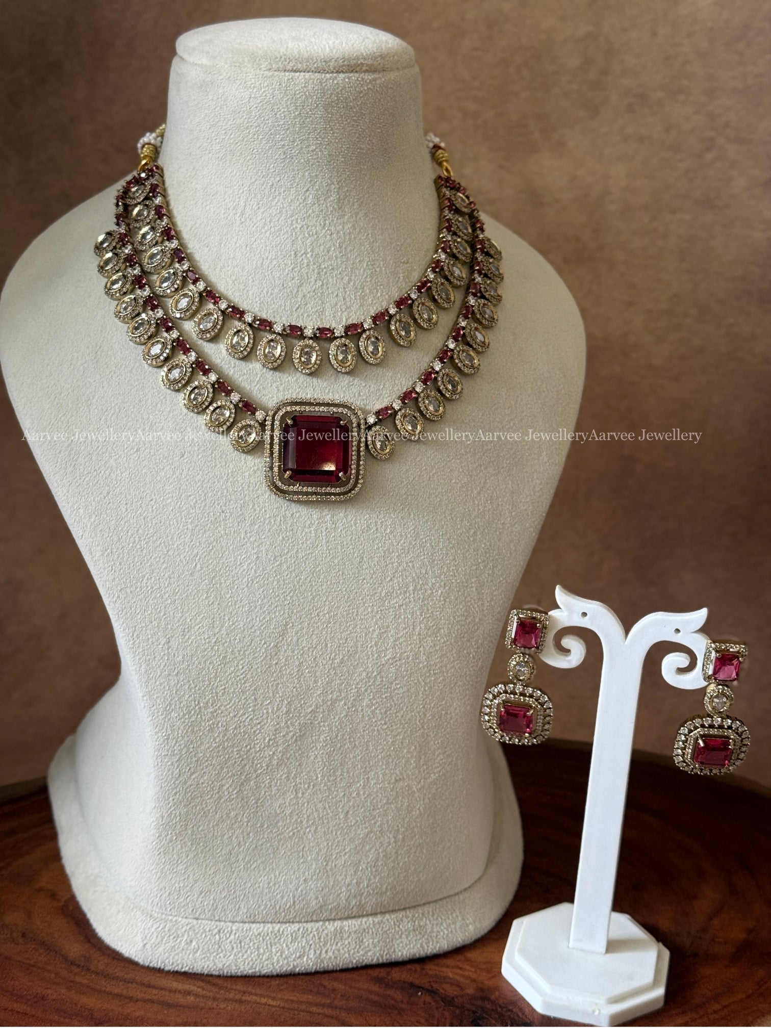 VICTORIAN TWO LAYER NECKLACE SET WITH RUBY STONES