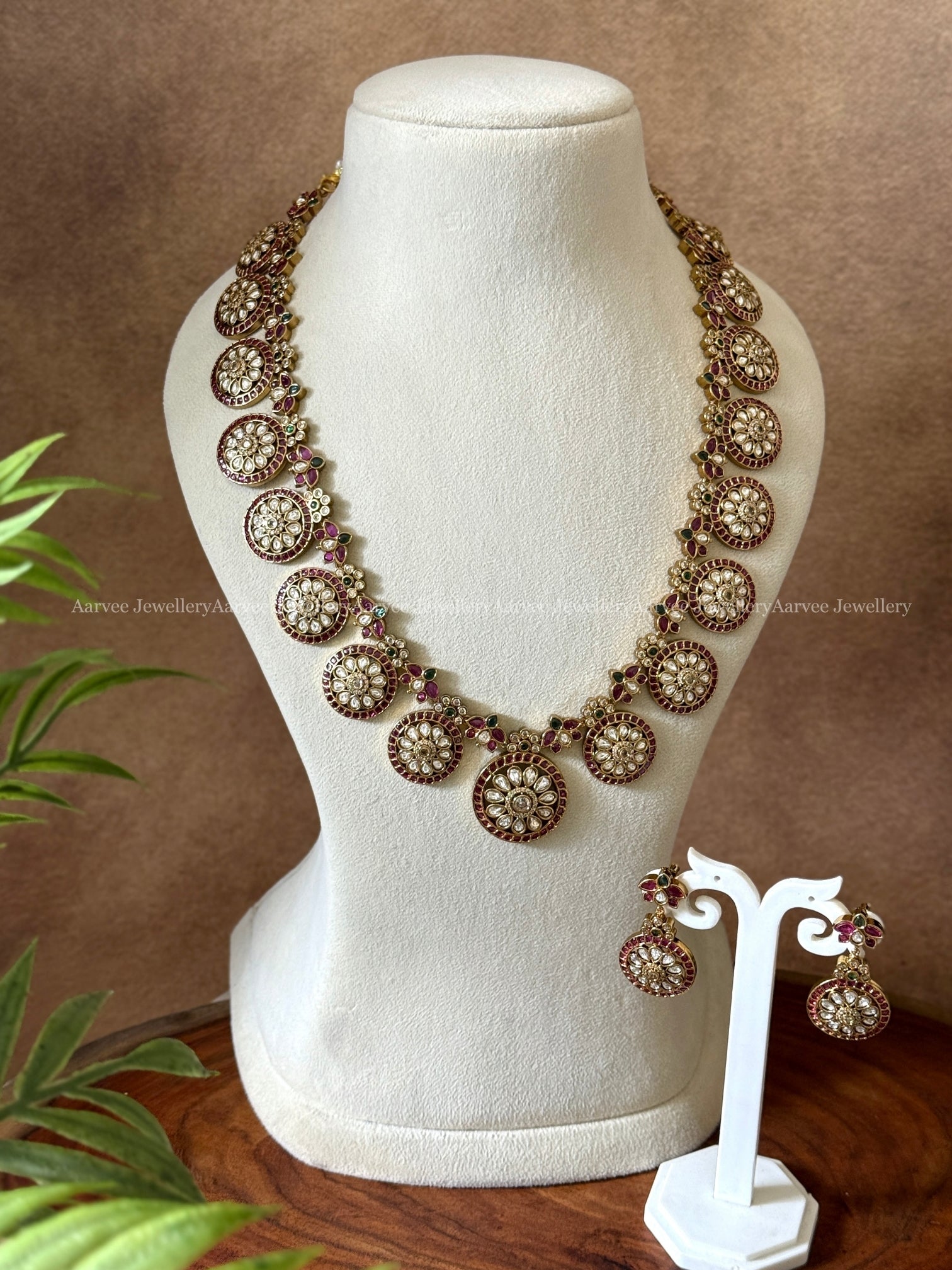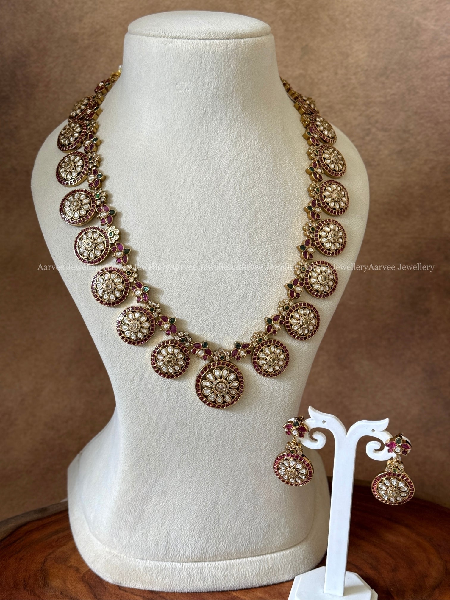 Traditional Butta Haram Set Adorned with White and Ruby Stones