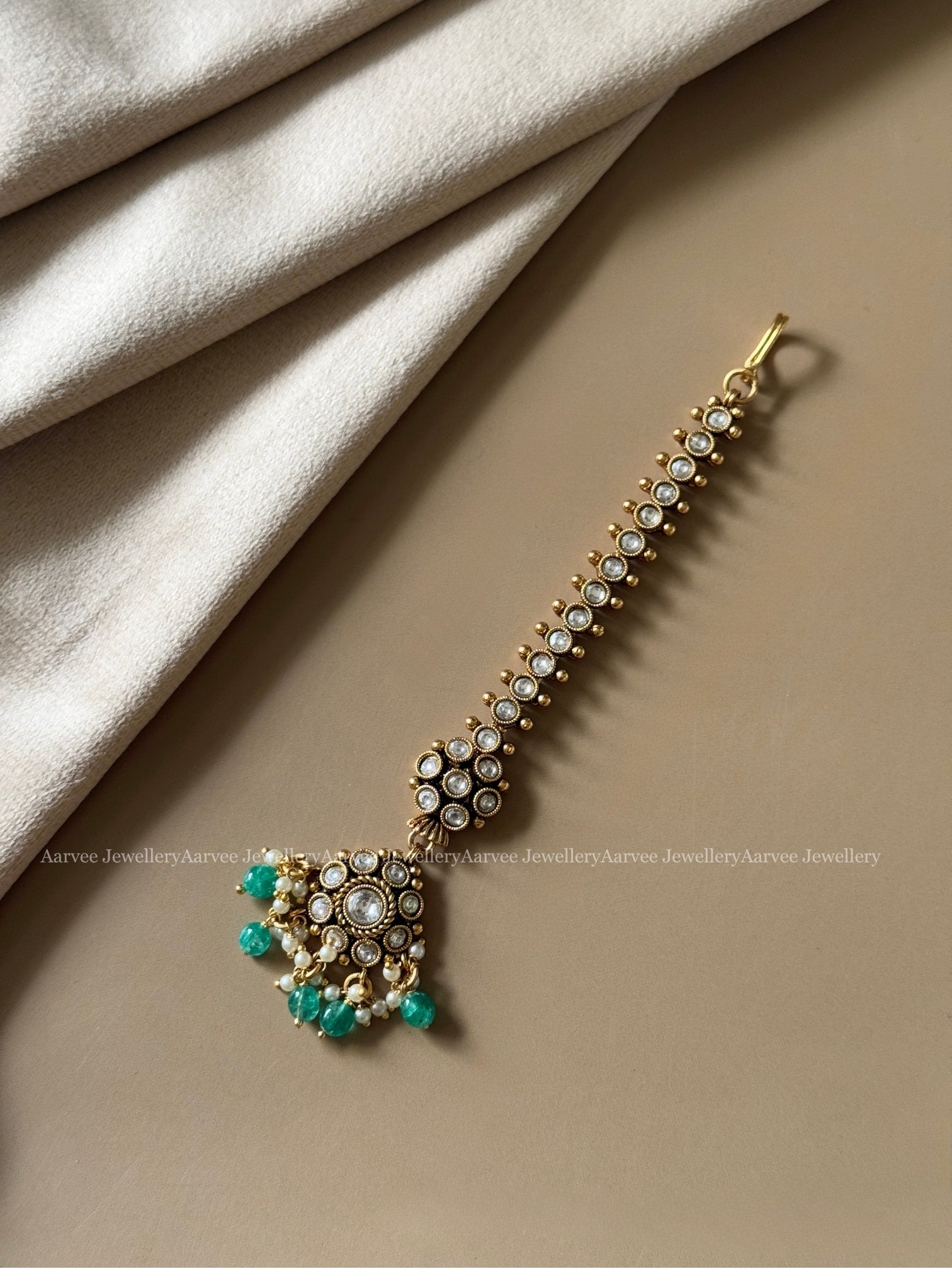 Delicate Maangtikka Featuring White Stones and Soft Pastel Beads